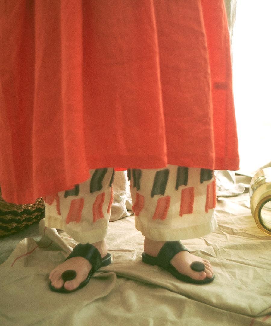 ワンピースのアンダーパンツとしても、裾から覗くジャガード柄が華やかな印象を加えてくれます。