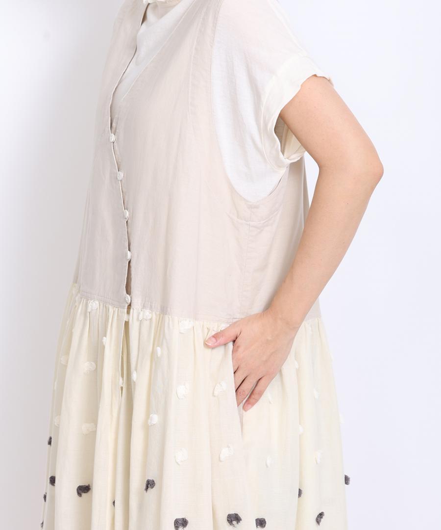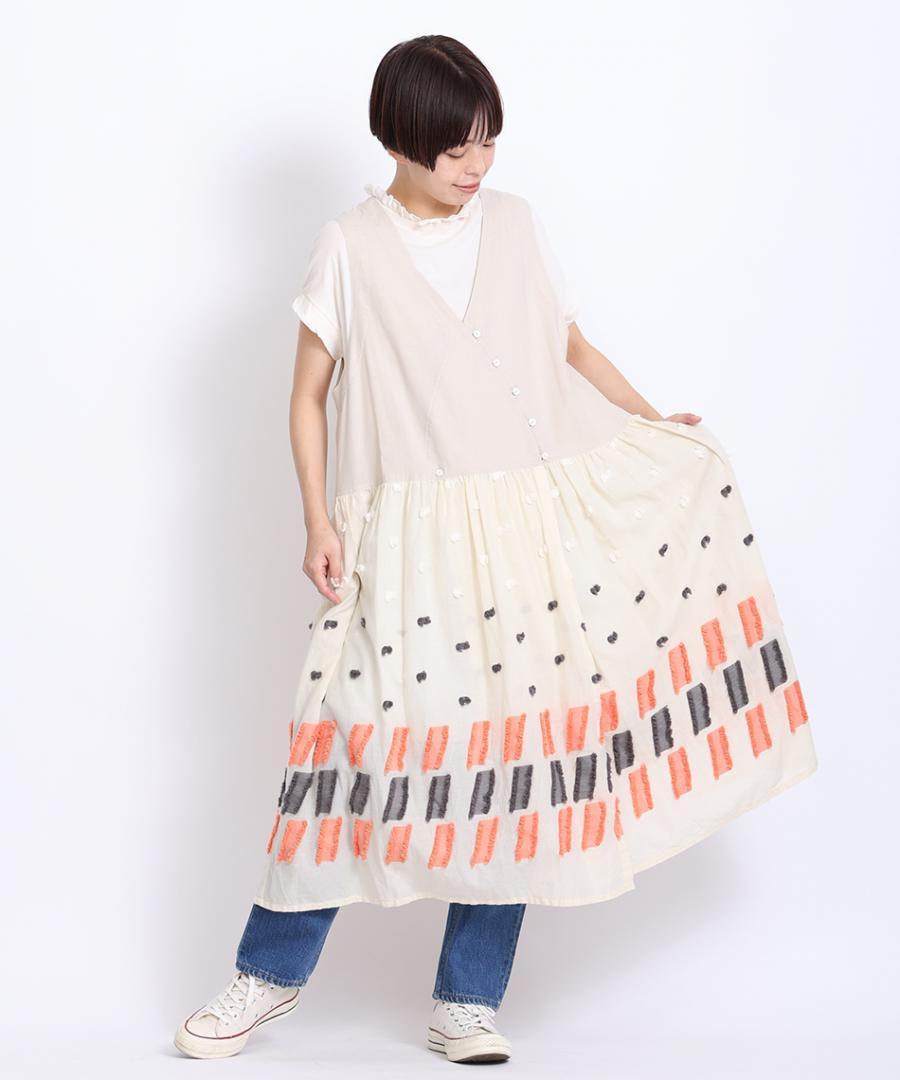 立体的なジャガード模様がパッと目を引くカシュクールワンピース。