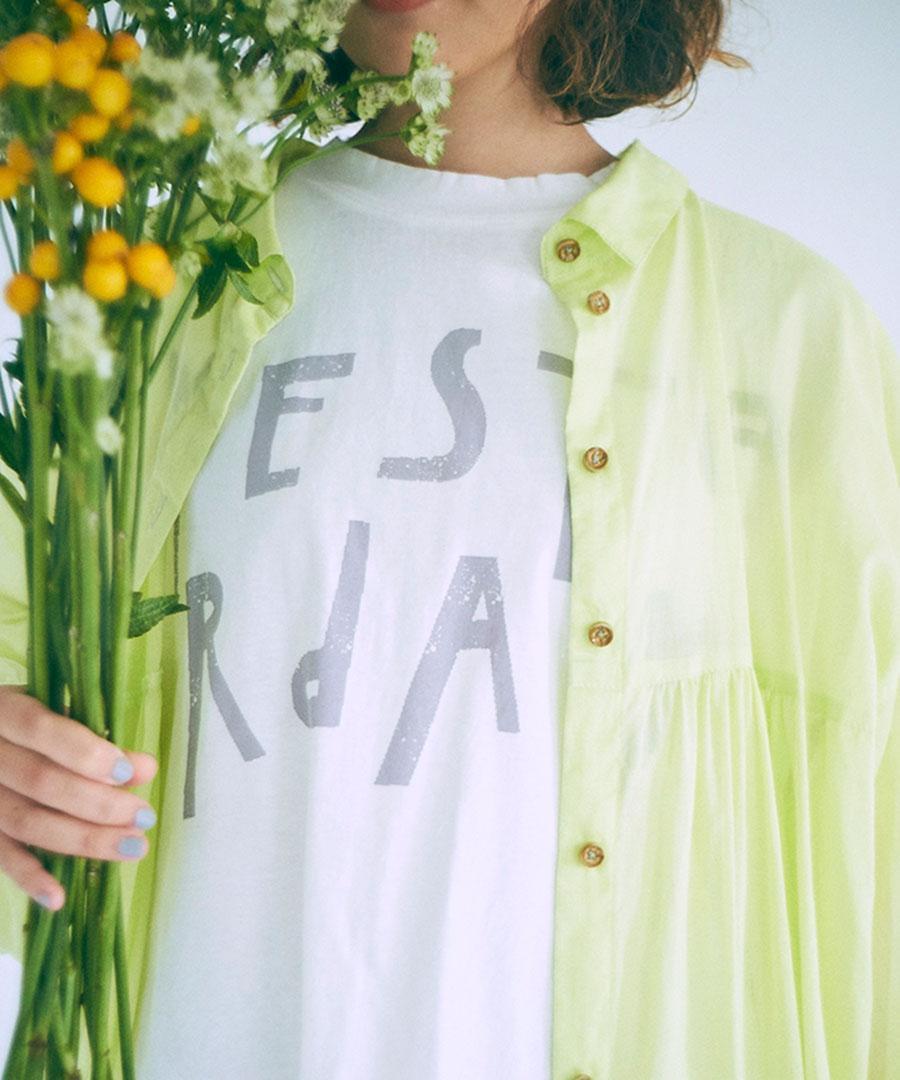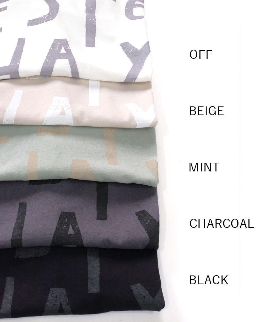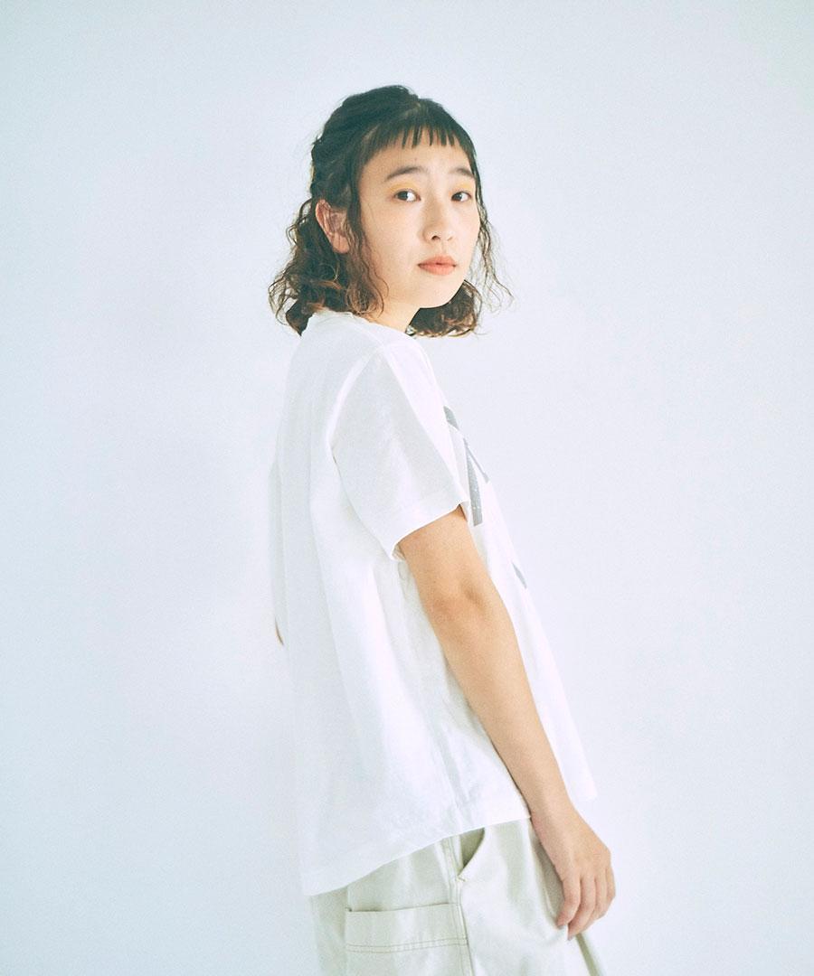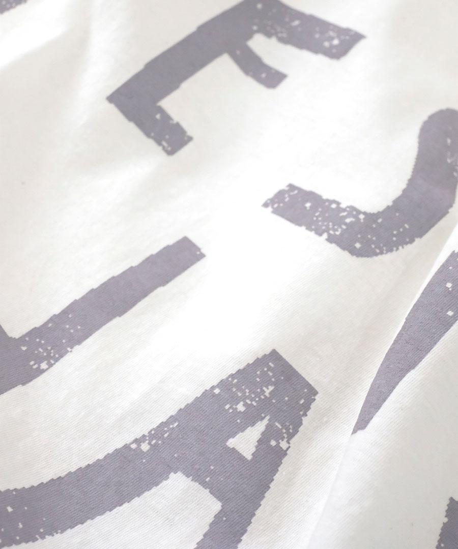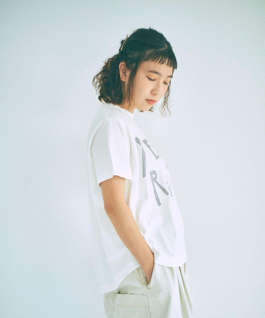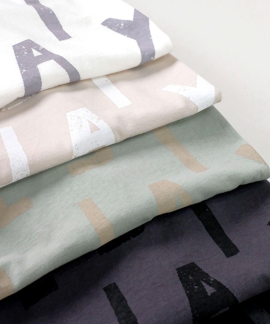 ナチュラルな風合いで肌触りが良く、通気性や吸湿性にも優れているラフィ天竺で仕立てたプリントTシャツ。