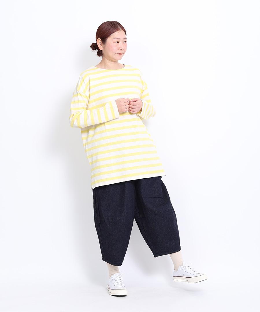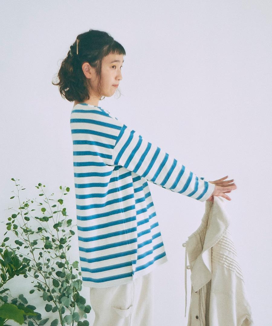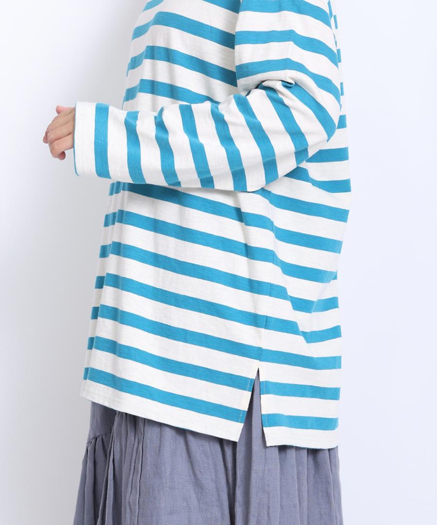 ナチュラルな風合いのコットンスラブ素材で仕立てたボーダー柄ロングTシャツです。