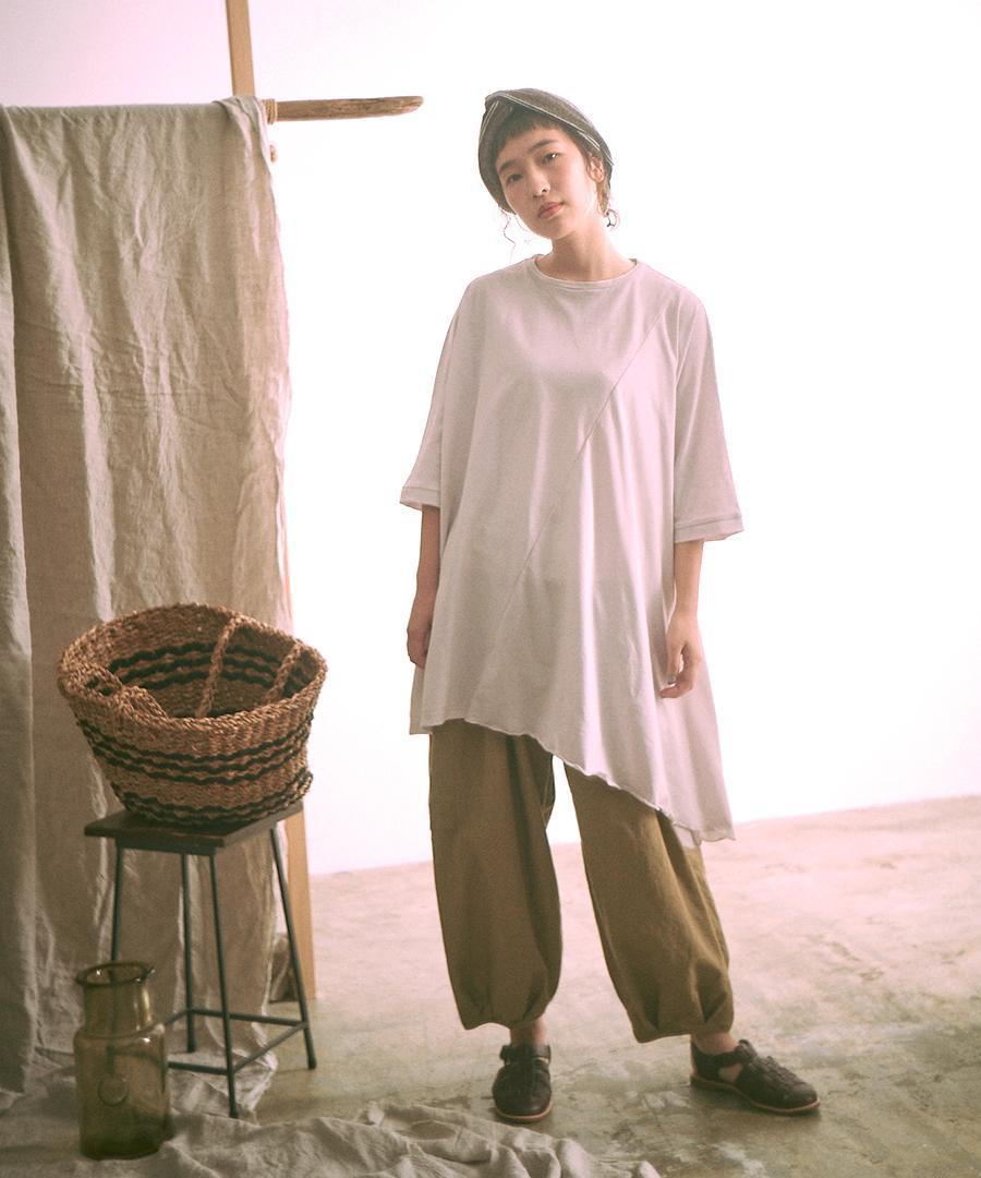 肌にやさしいコットン100%の天竺素材で仕立てたチュニック。