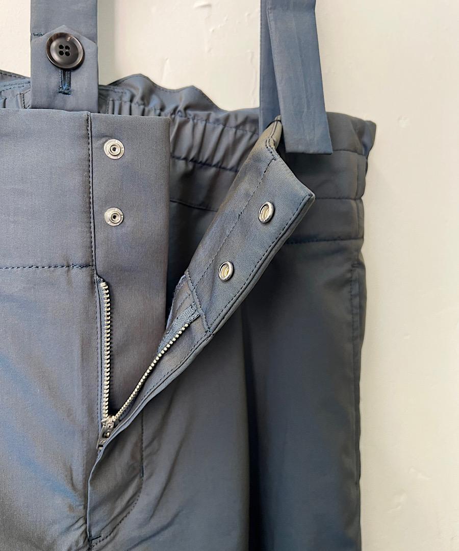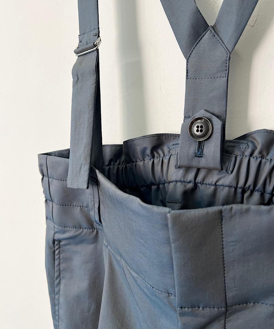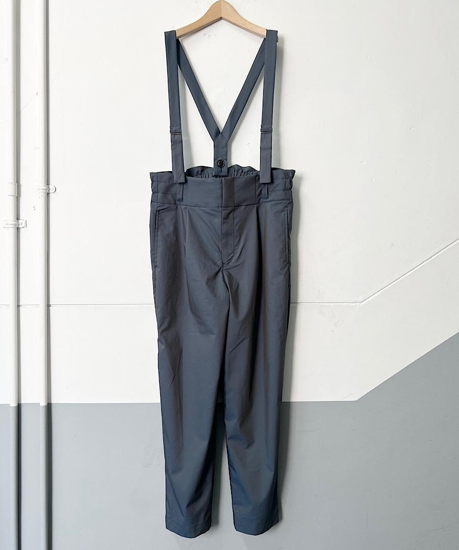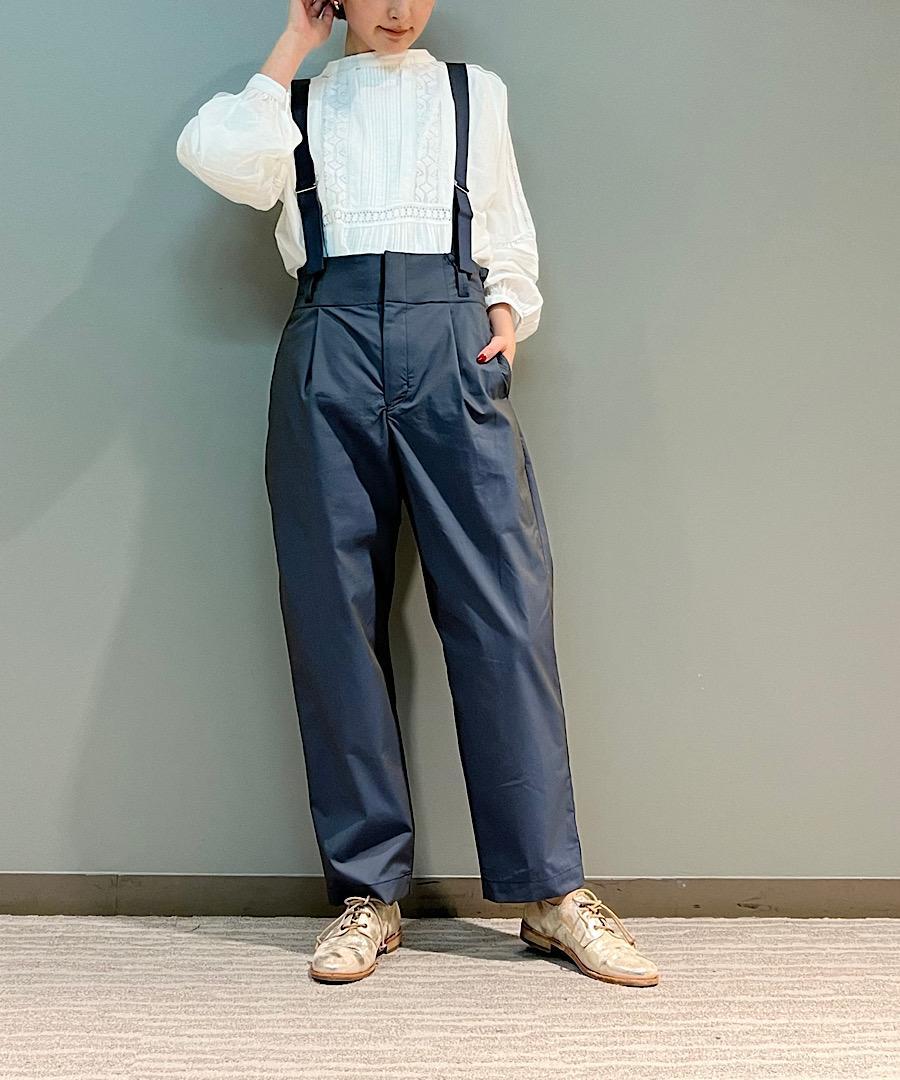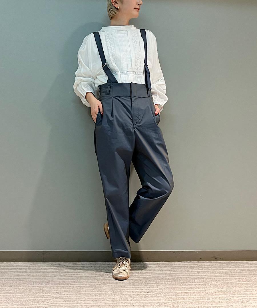 サスペンダーとウエストのアジャストボタンにより、ローライズでルーズなスタイルとジャストウエストでキレイ目なテーパードパンツの2wayで楽しめます。
