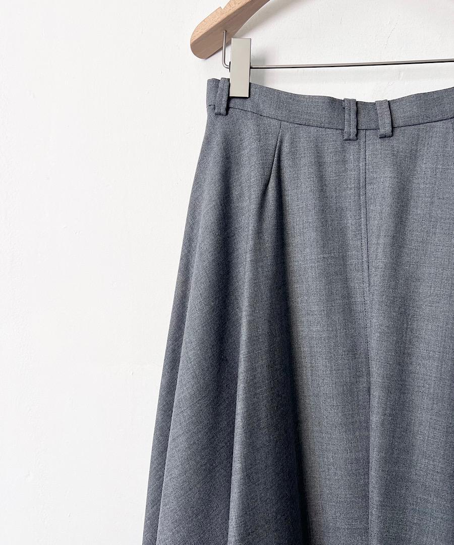 ウエスト周りはすっきりと、裾周りはたっぷりと動きのあるシルエットに。