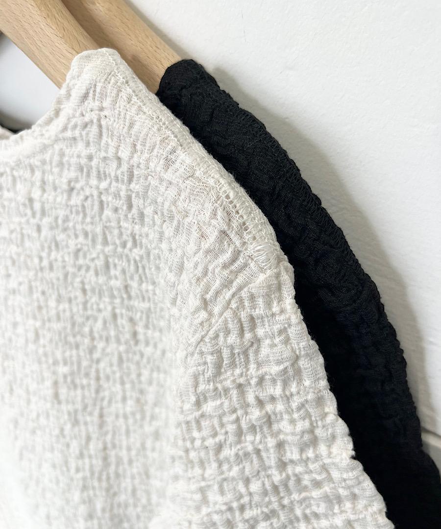 柔らかなストレッチ性と独特の表情のある、綿ガーゼのような優しい肌触り。