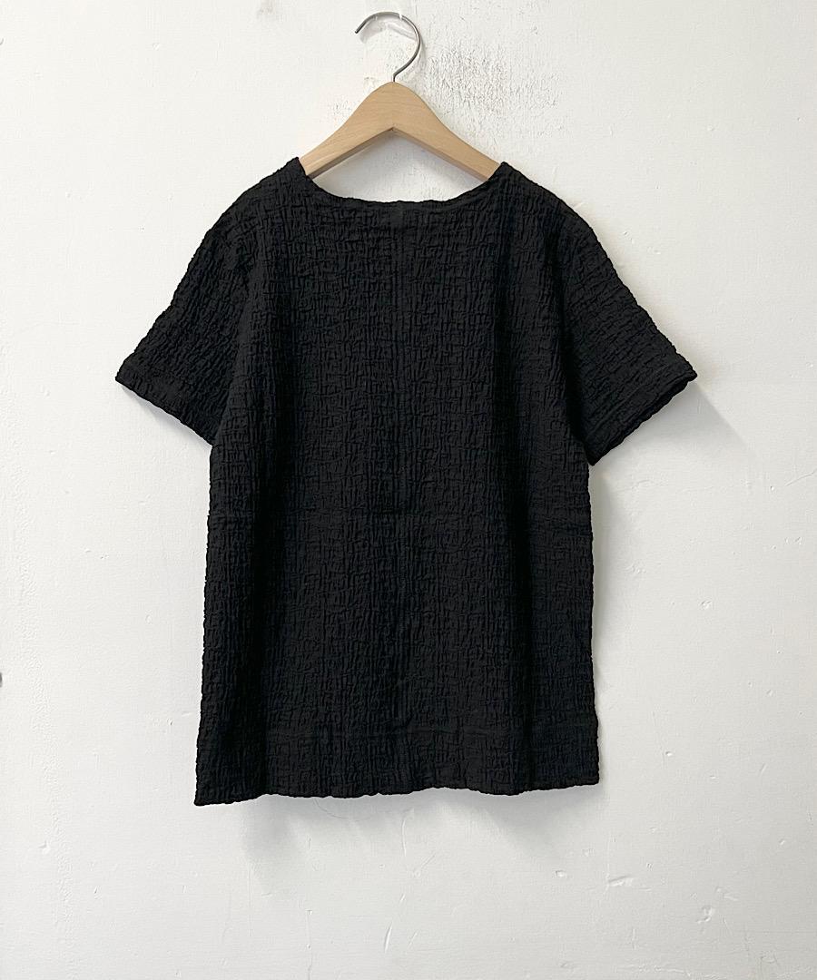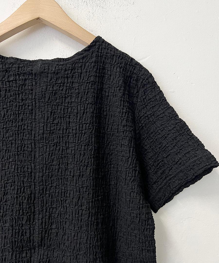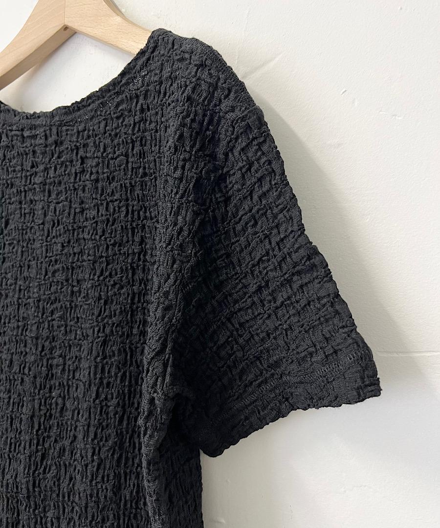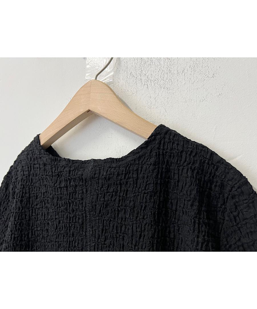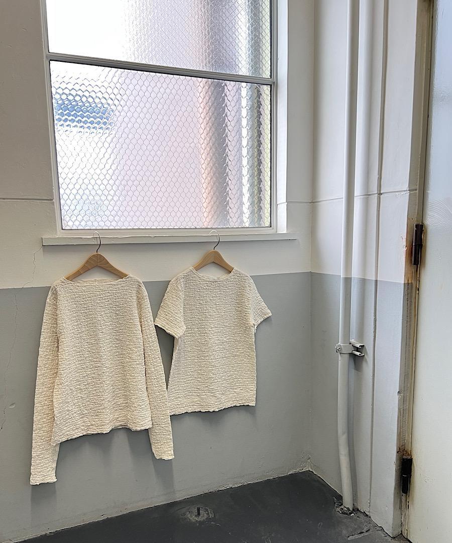 古い編み機を改造して皺加工のような表面感を生み出したラッセル素材です。