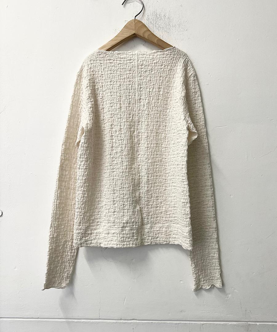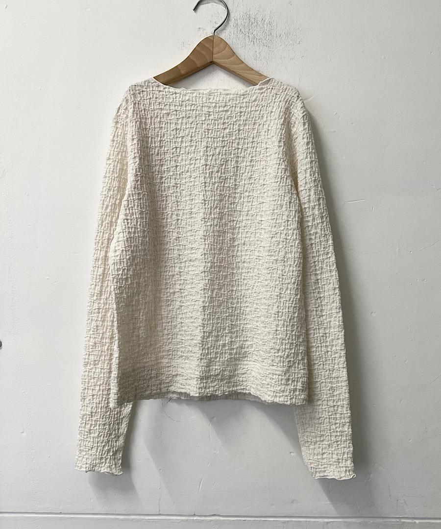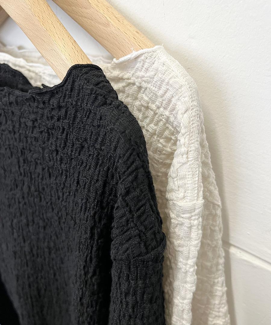 古い編み機を改造して皺加工のような表面感を生み出したラッセル素材です。