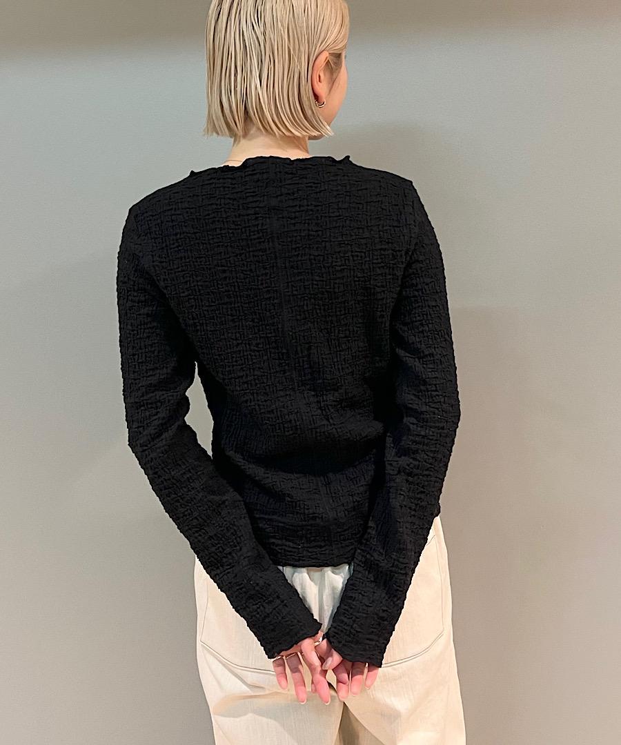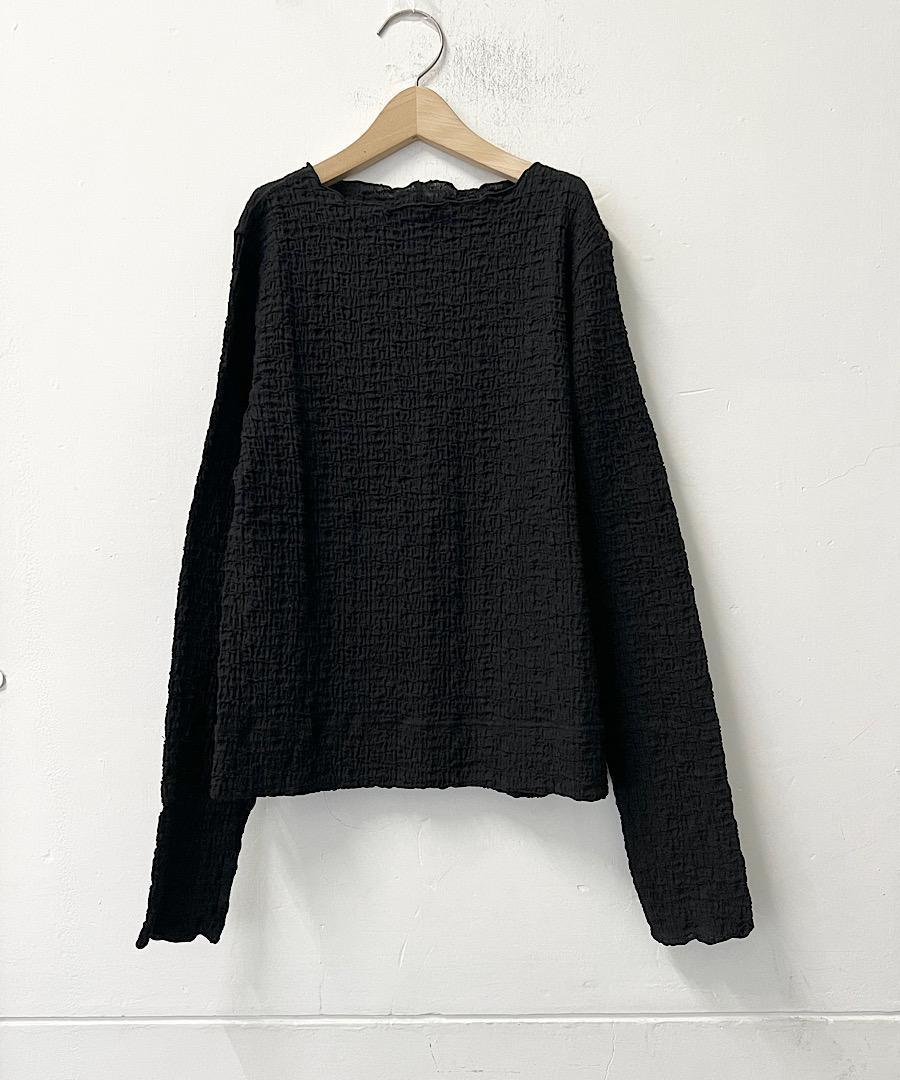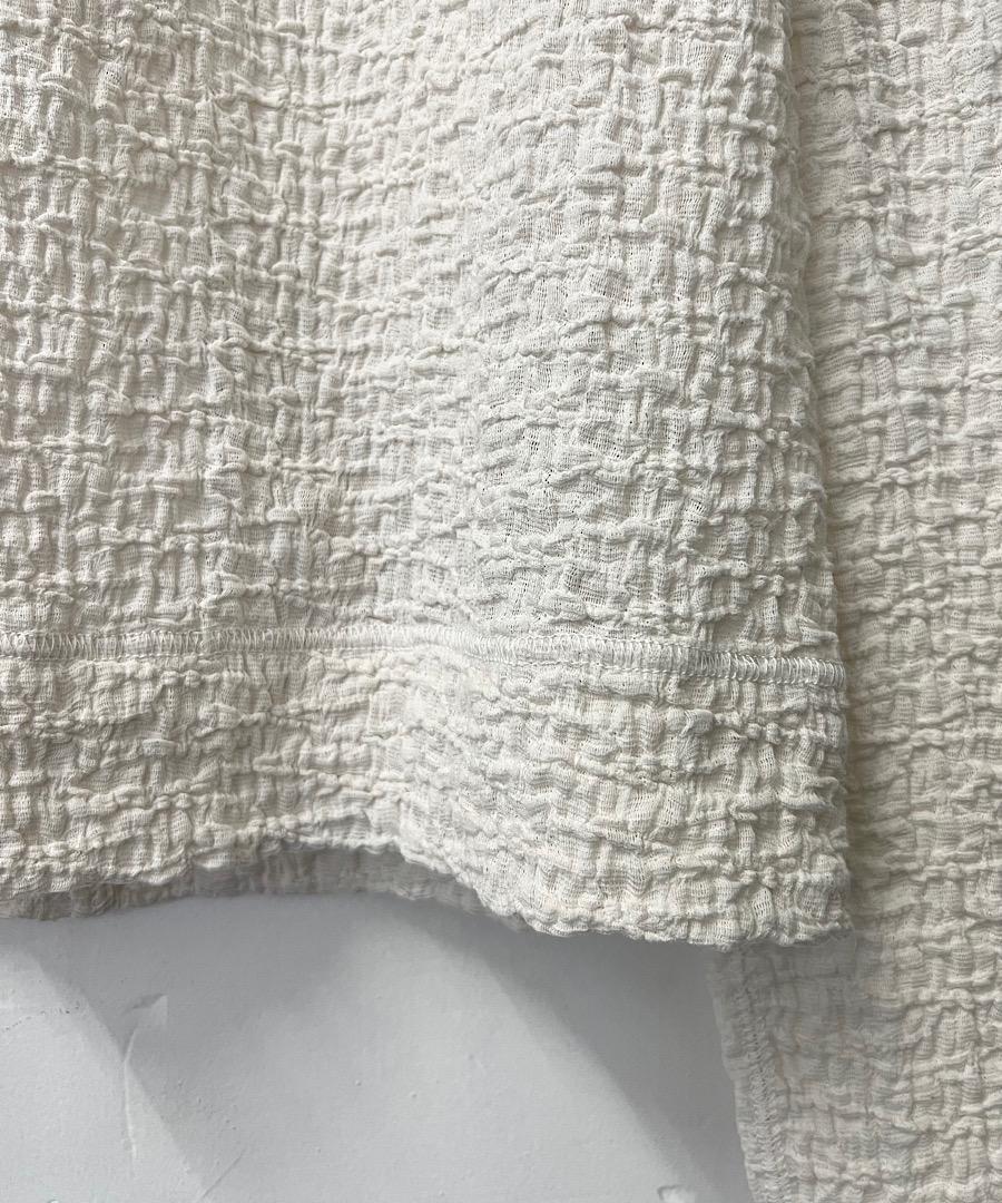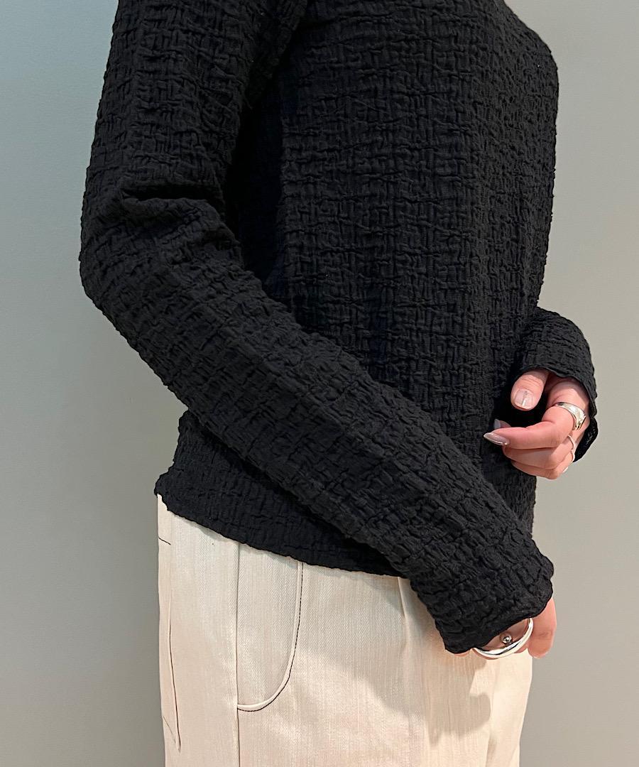 古い編み機を改造して皺加工のような表面感を生み出したラッセル素材です。