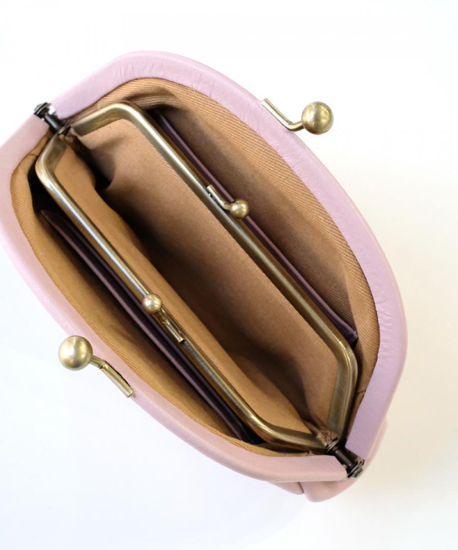 シボ感のあるレザーは上品で大人っぽいです。中は落ち着いた色合いの布張りになっています。