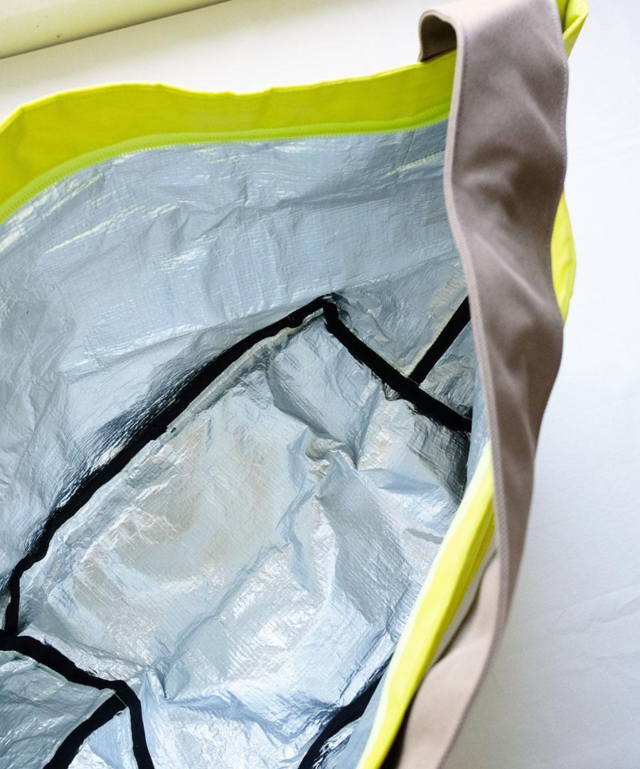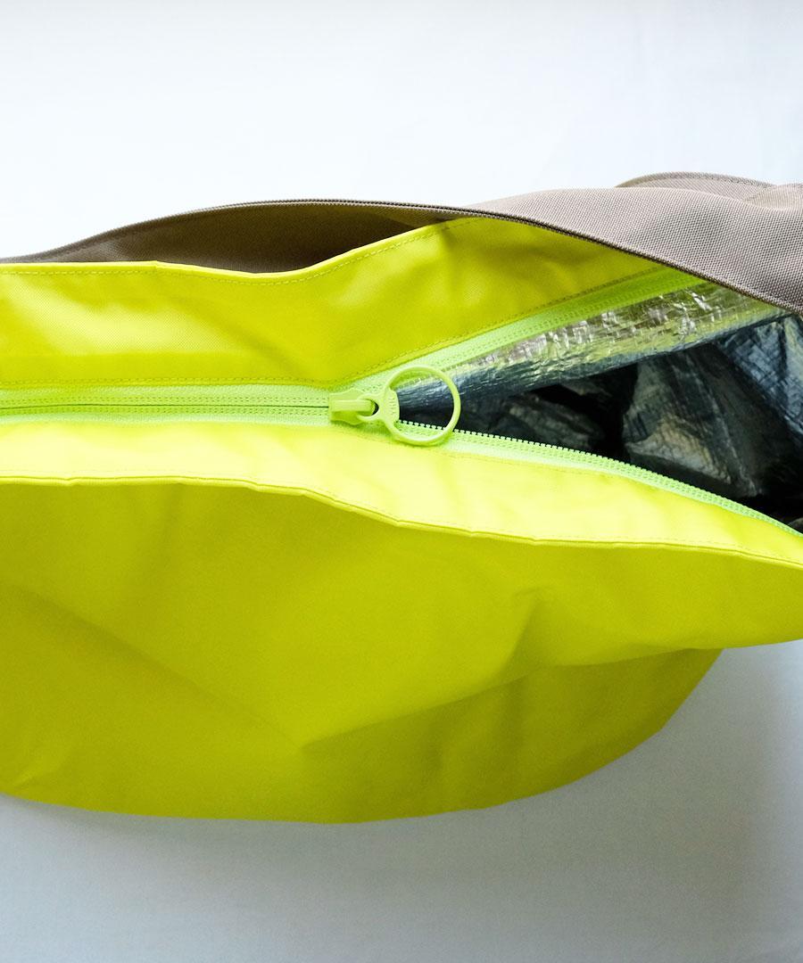 たたんでコンパクトに持ち運びできる保冷のショルダーバッグ。