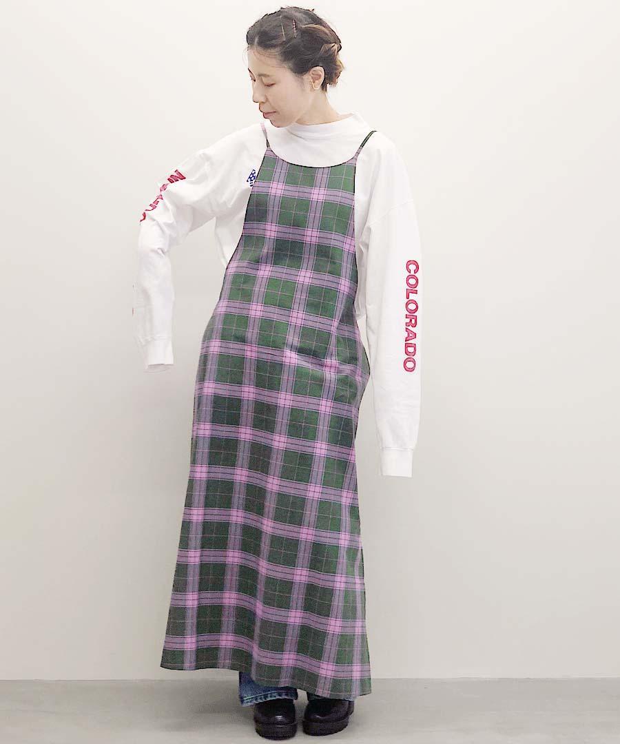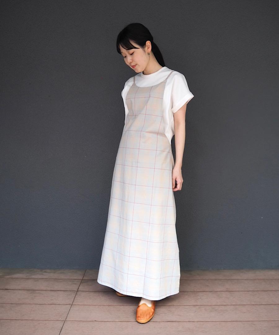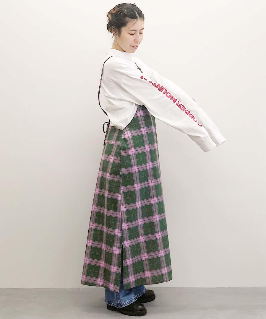 エプロンのようなワンピース。