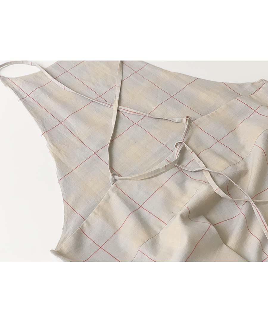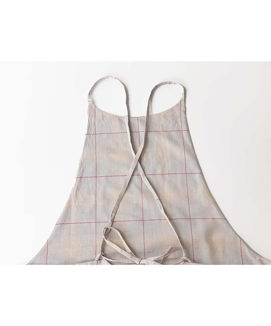 背中のリボンで丈の調節が可能です。