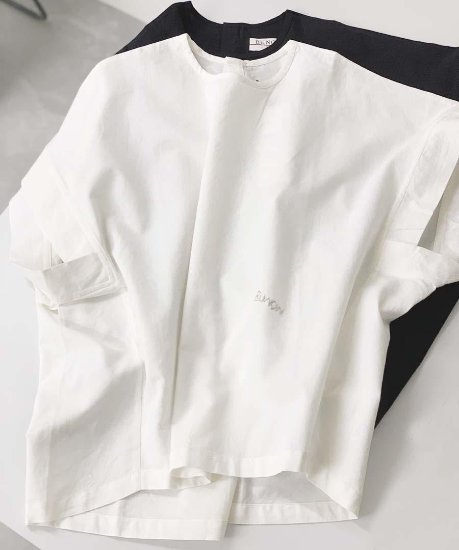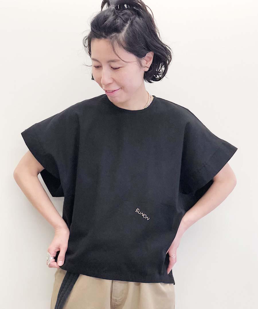 薄手のコットン布帛生地を使用したブラウスのようなTシャツです。