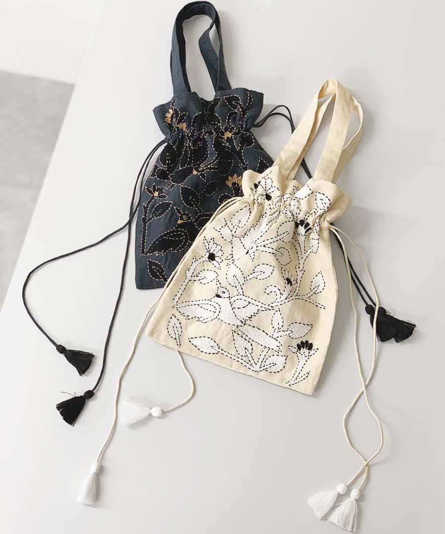 定番の巾着バッグ。