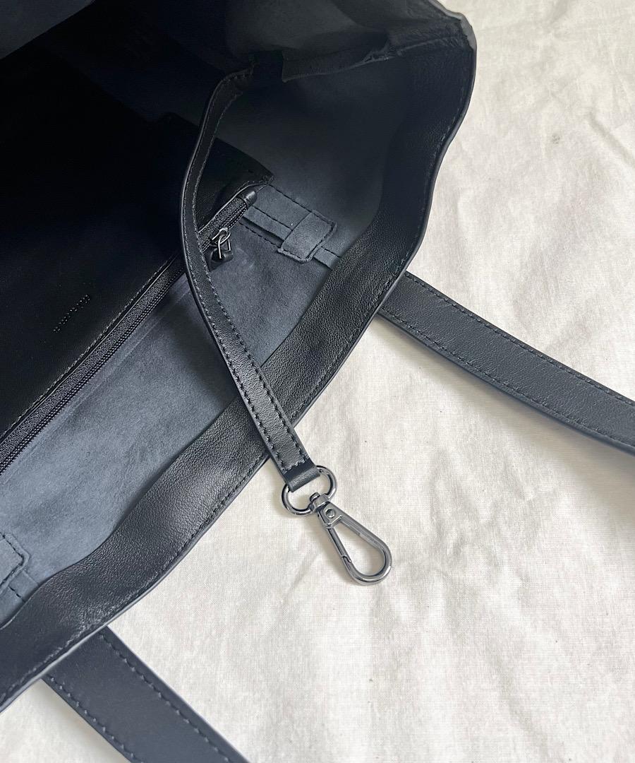 内側にジッパーポケット、鍵用のカラビナが付いているので小物を分けて収納することができます。