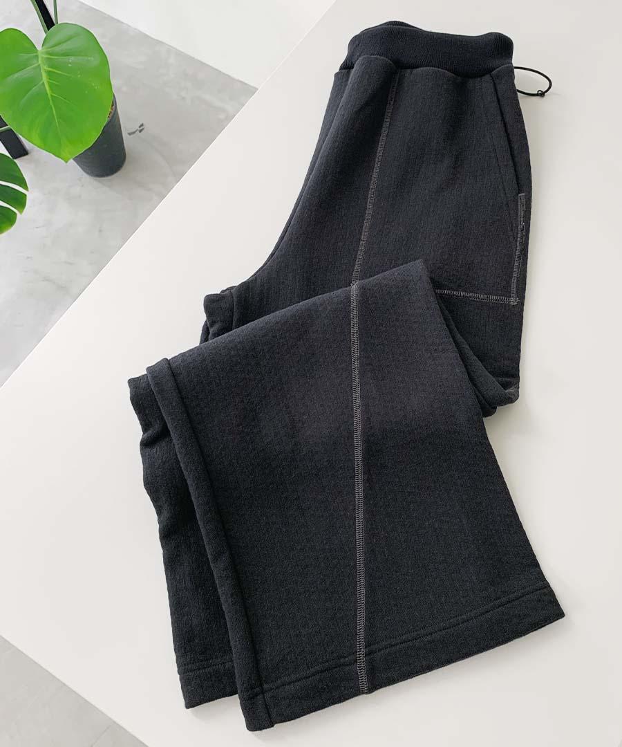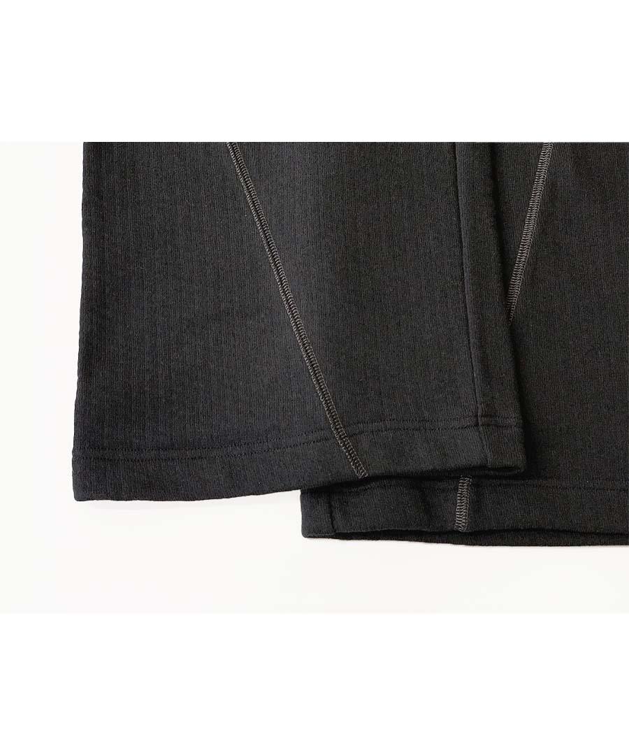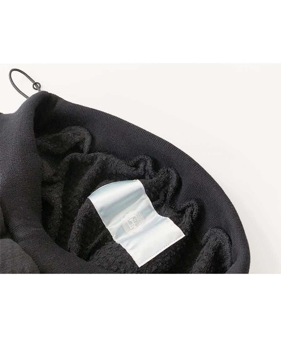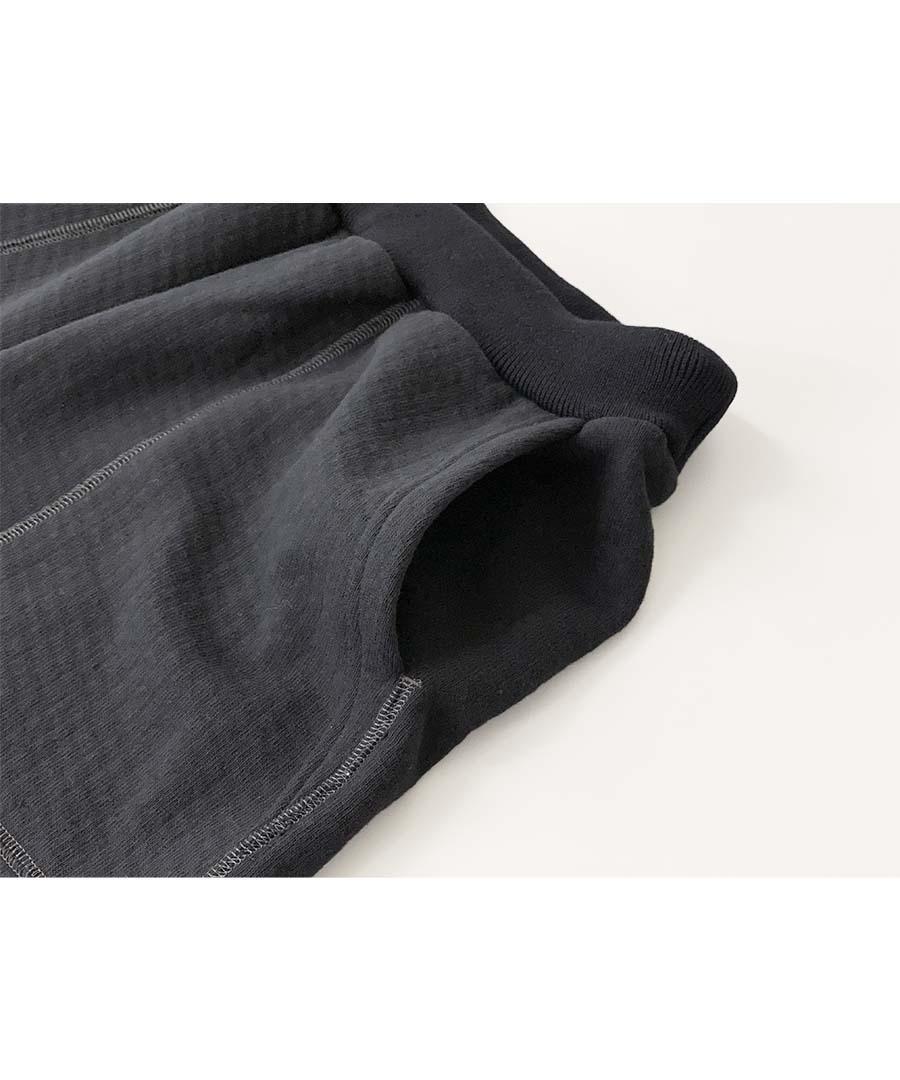 凹凸感のあるランダムな表面の杢調の表情が印象的な裏毛パイル生地を使用。