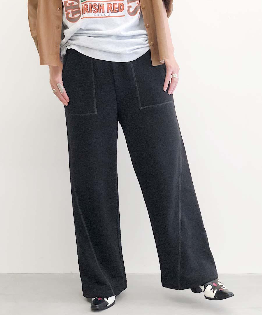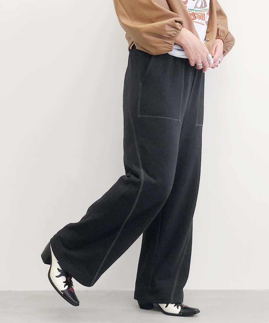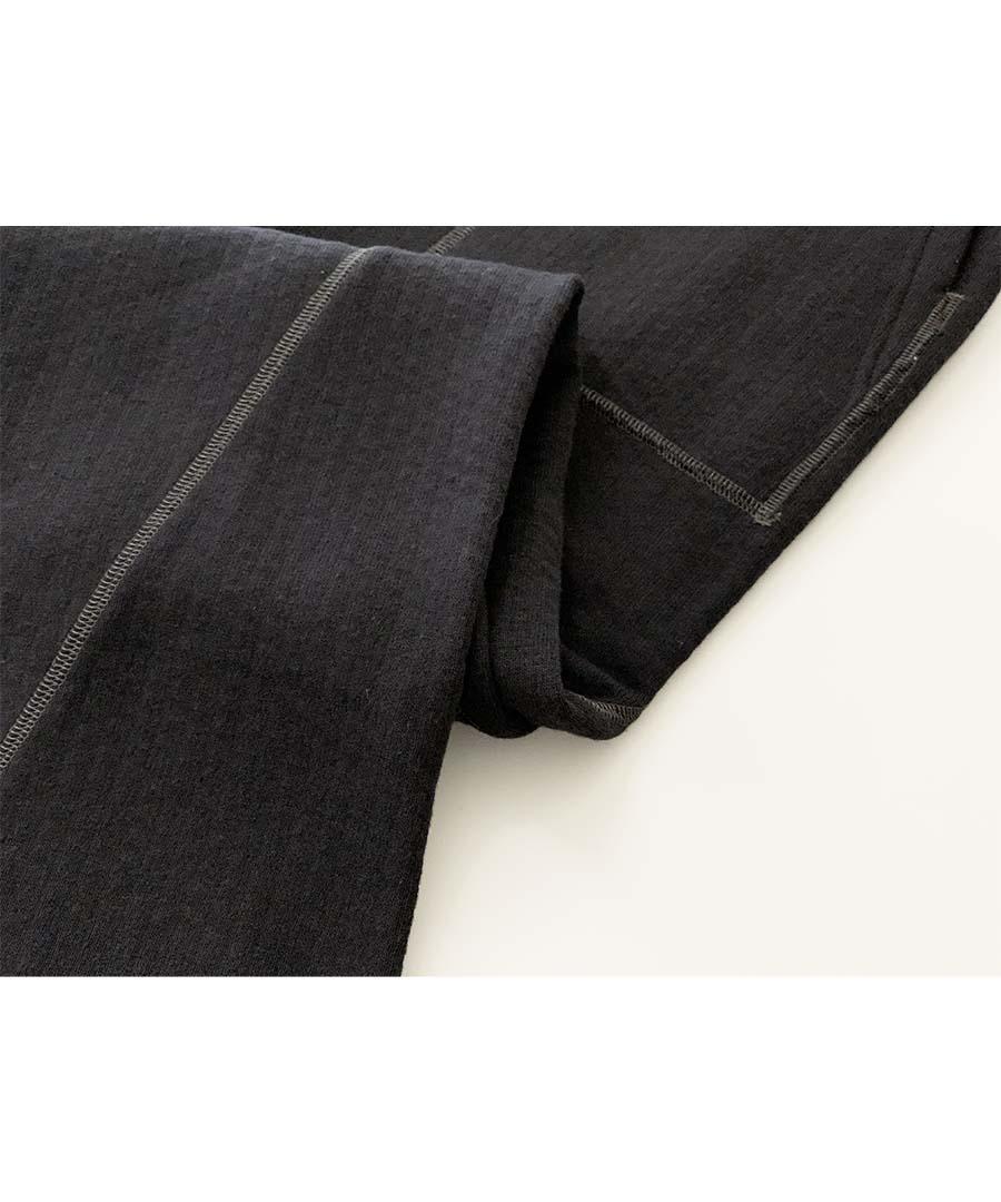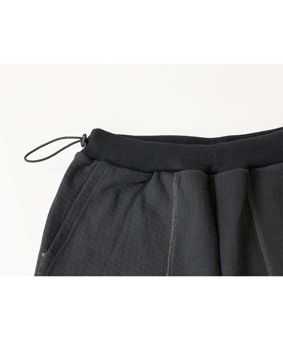 凹凸感のあるランダムな表面の杢調の表情が印象的な裏毛パイル生地を使用。