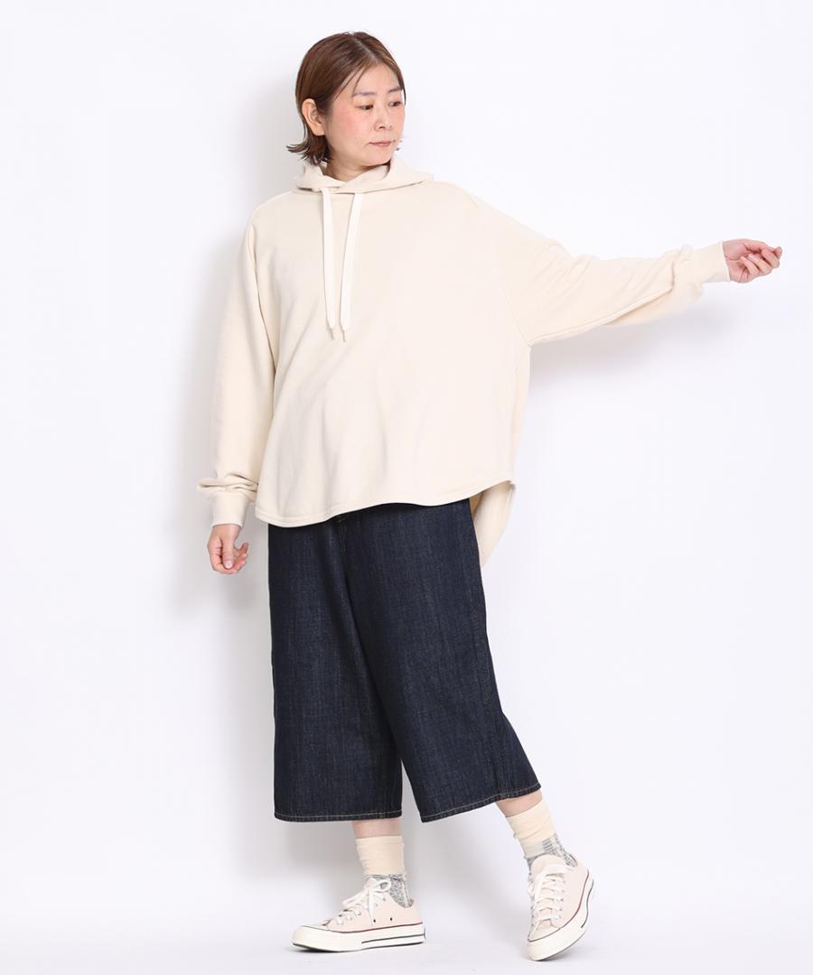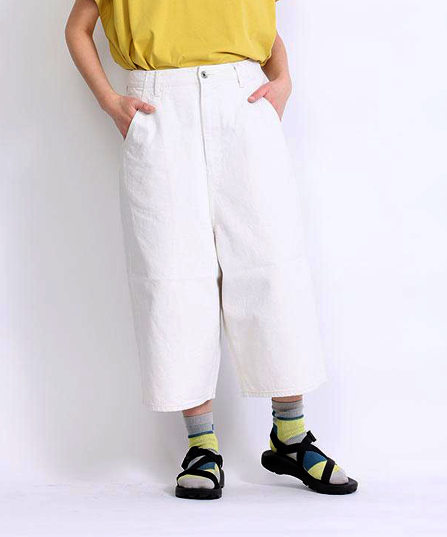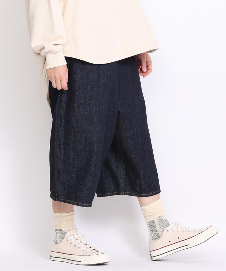 ワイドでストンとしたシルエットですっきり見えする7分丈パンツ。