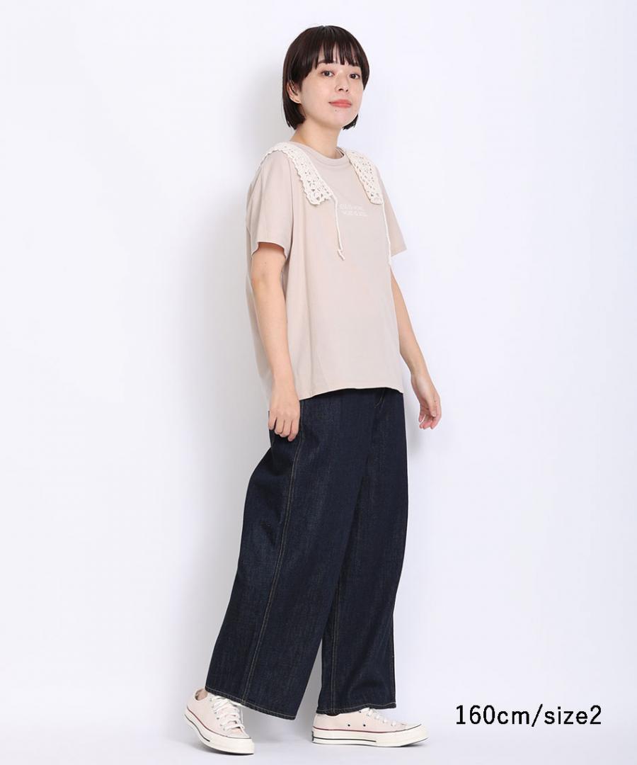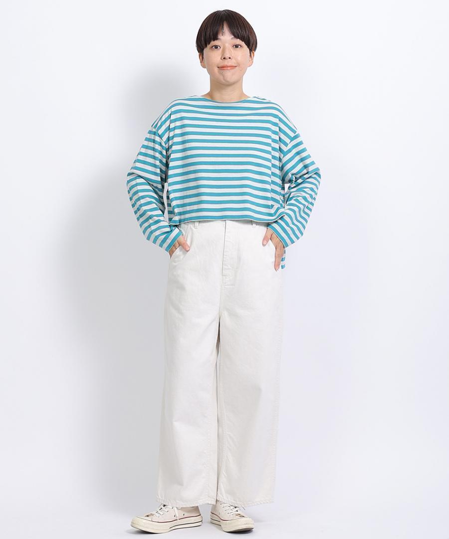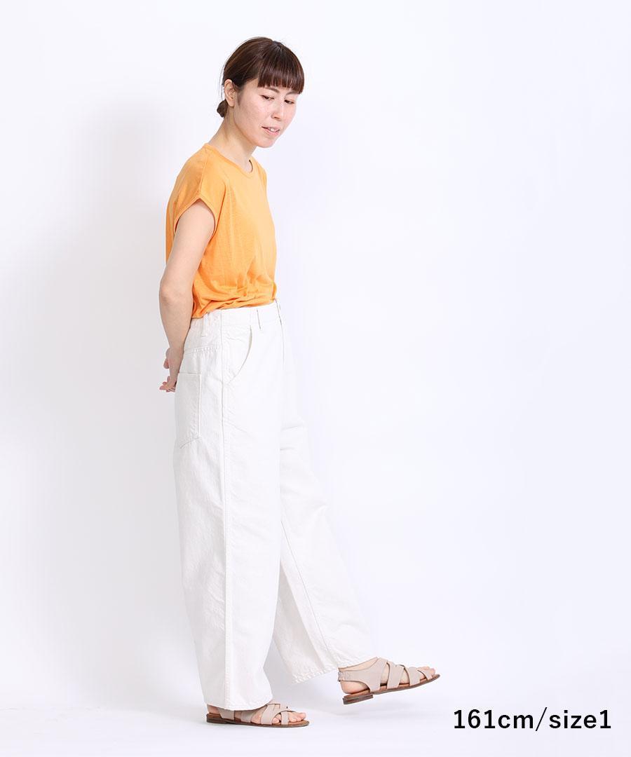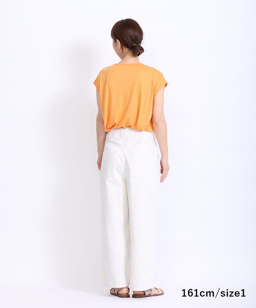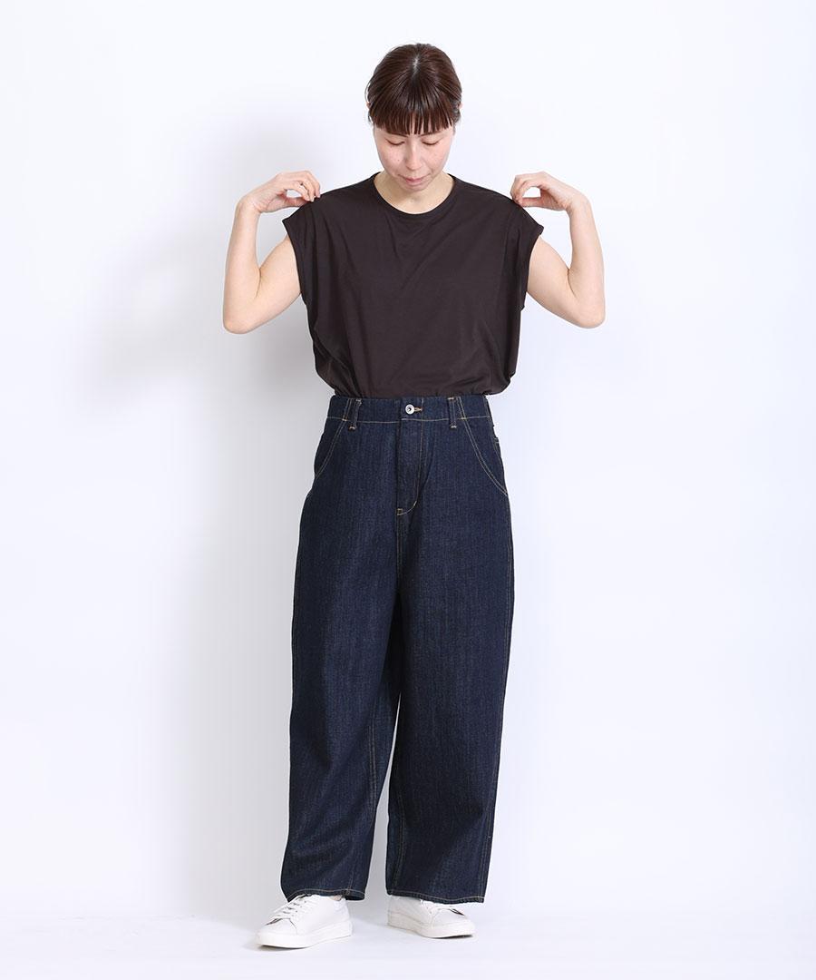 腰回りは、ややゆったりとしていて、ストンと落ちるワイドストレートシルエット。
