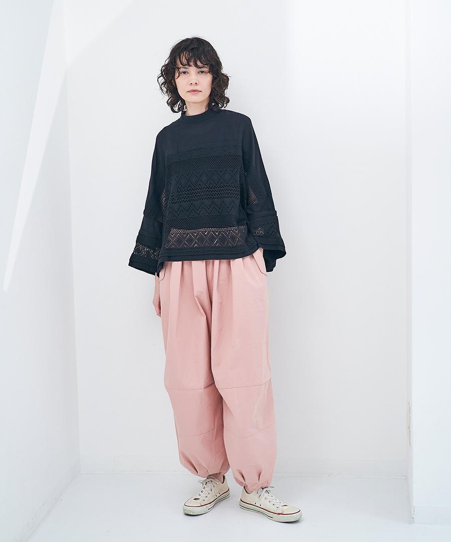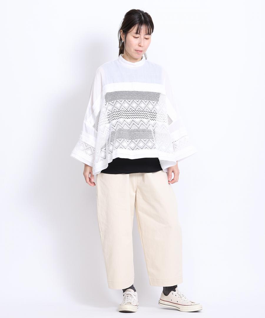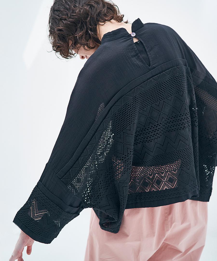 広めにとった身幅や袖口でレイヤードスタイルにも取り入れていただきやすいアイテム。