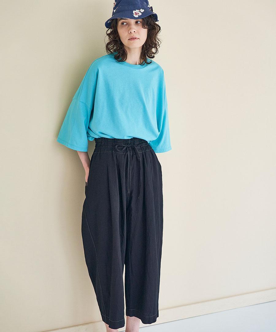 股上深めのゆったりとした穿き込みですとんと縦に落ちる、少しワイドなシルエットです。
