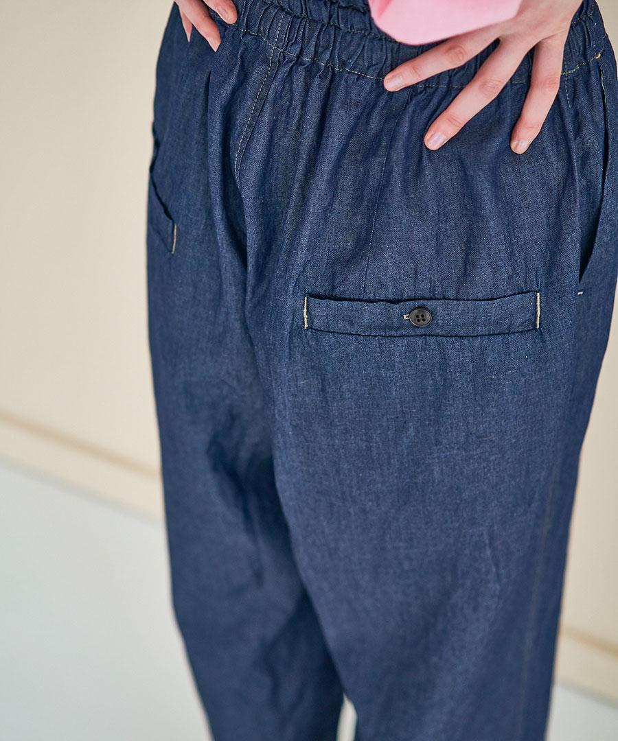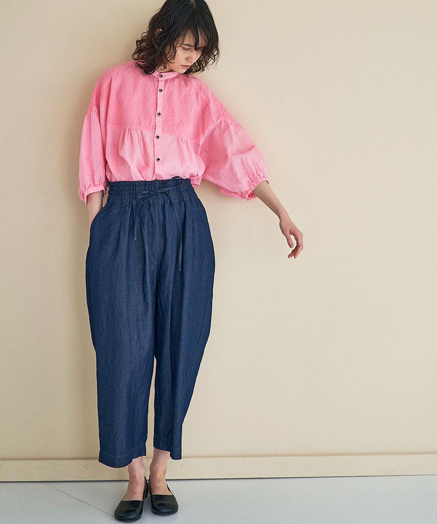 シャツ地のように薄い4.5オンスのデニム素材のパンツです。