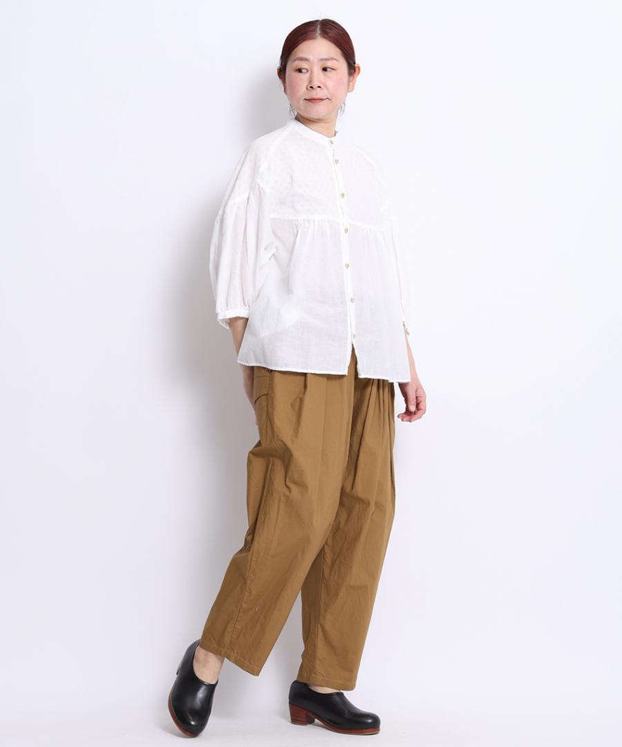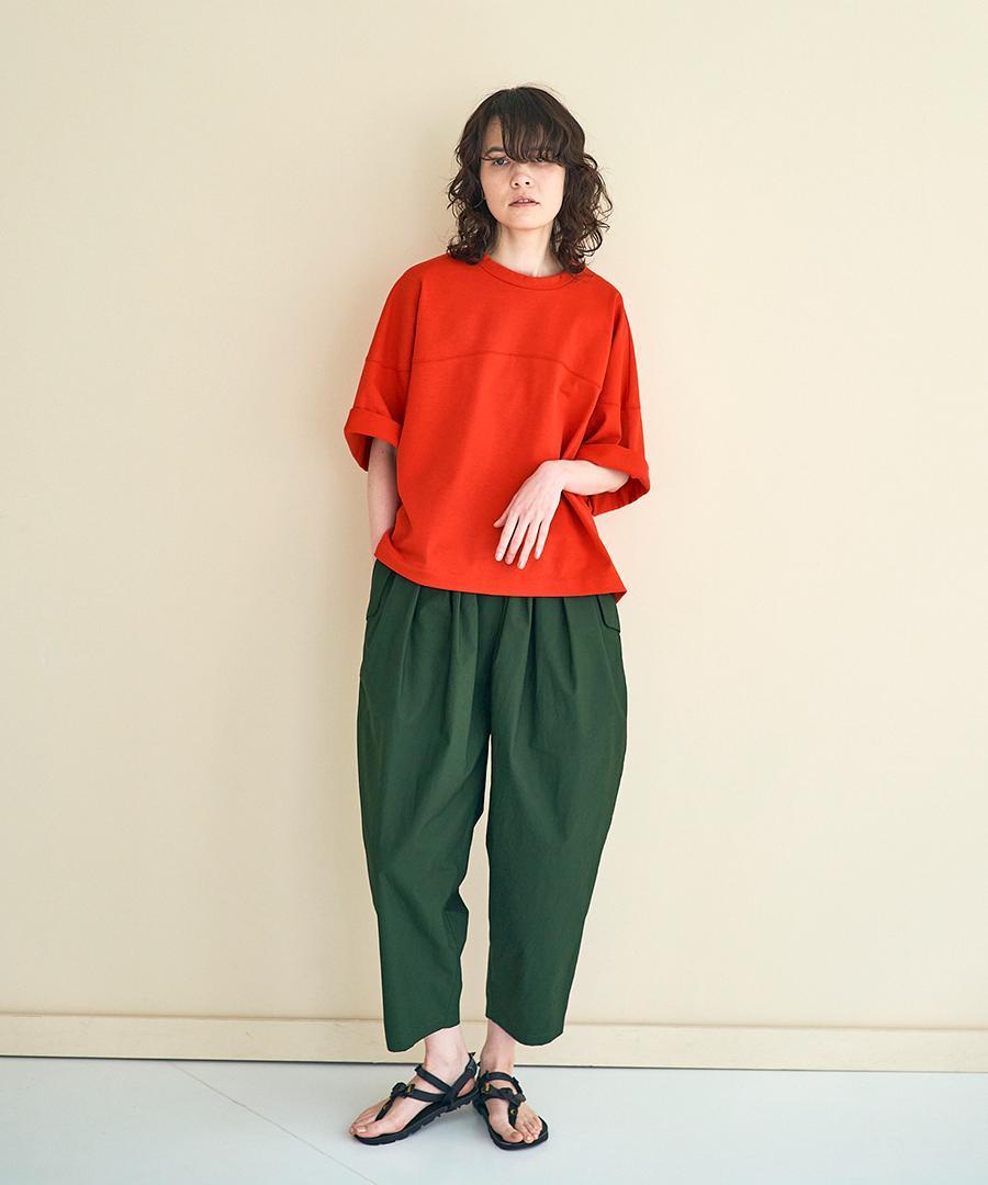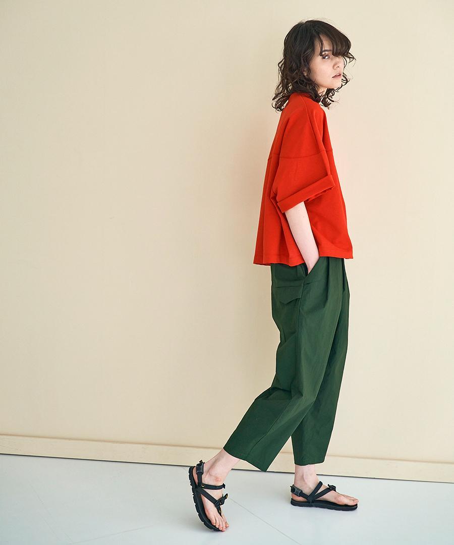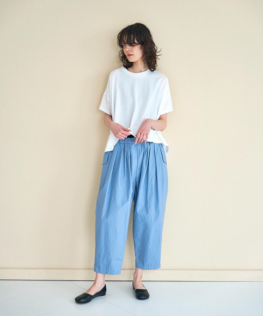 綿100%の軽くてハリのある生地感で春夏シーズンのスタイリングにおすすめです。
