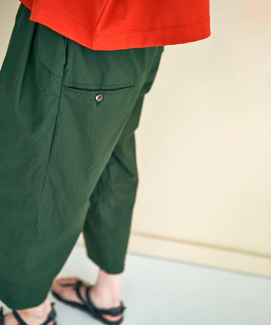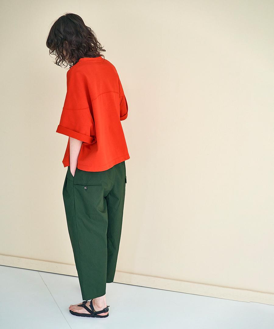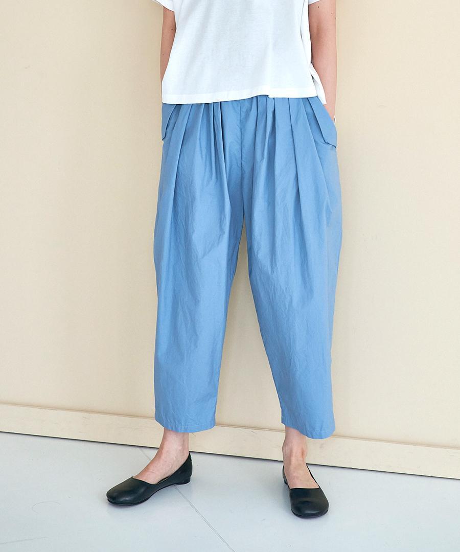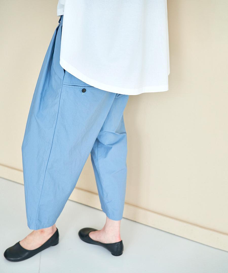 プリーツのようにタックをたくさんとり、穿きこみはゆったりながらスッキリ見えるシルエットに仕上げました。
