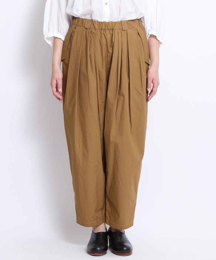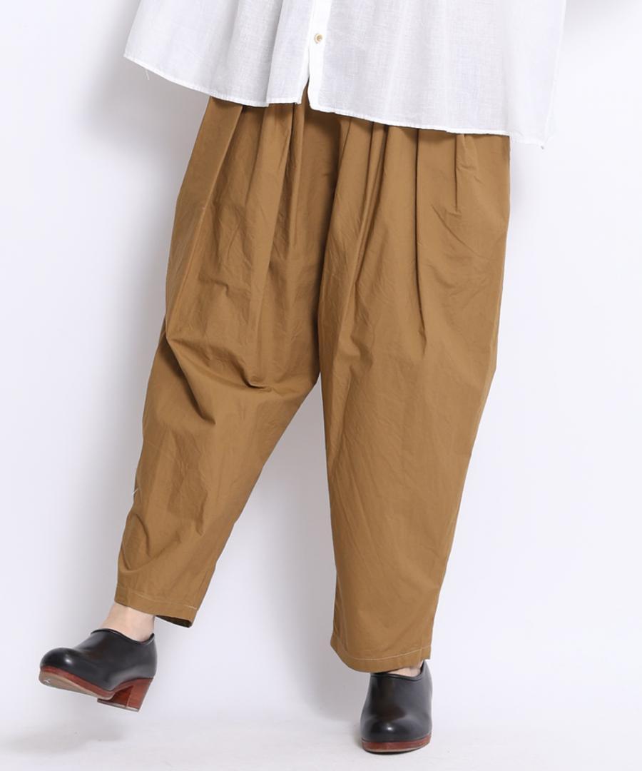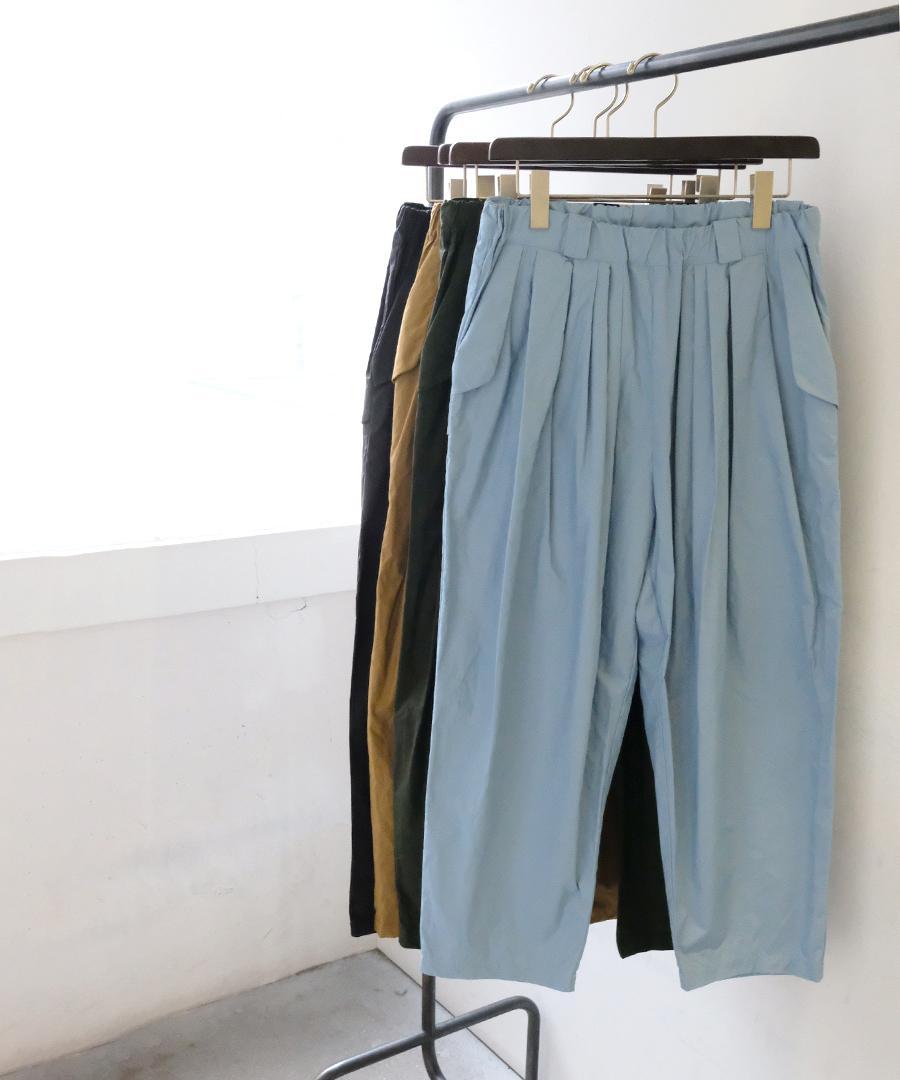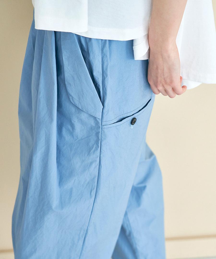 プリーツのようにタックをたくさんとり、穿きこみはゆったりながらスッキリ見えるシルエットに仕上げました。