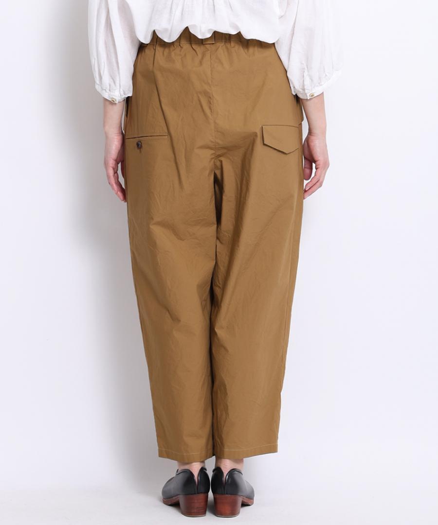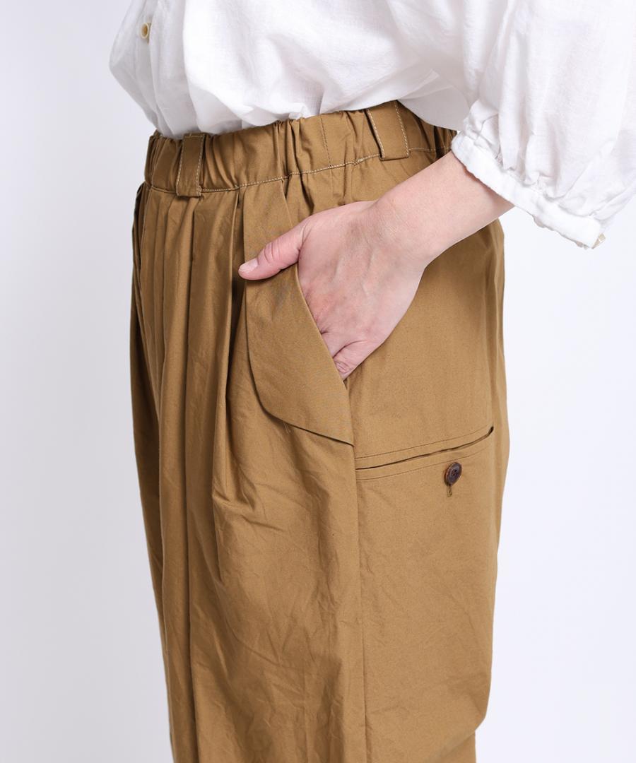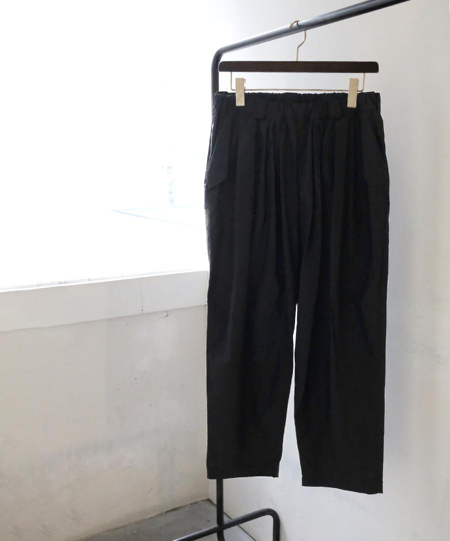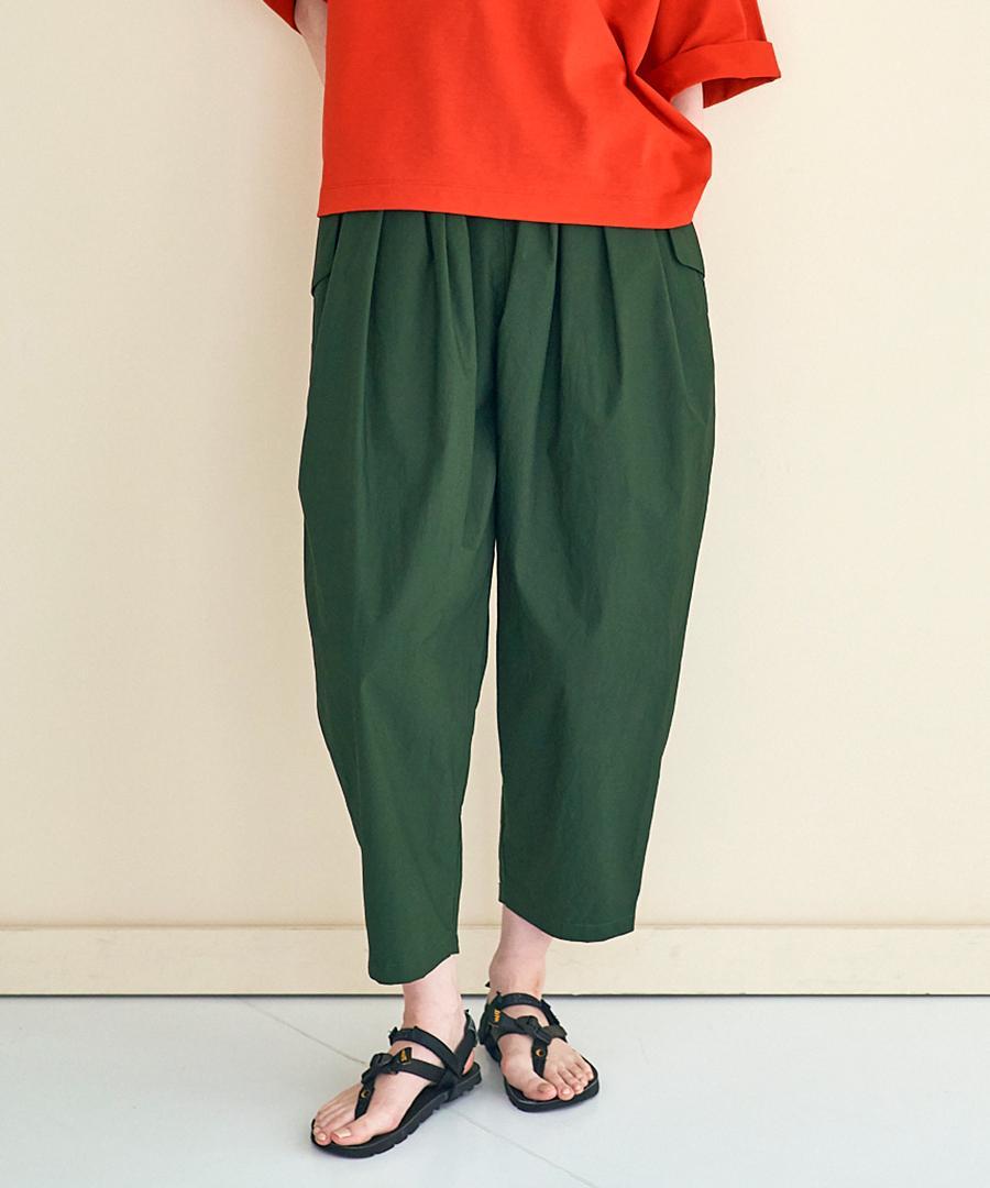 適度なハリ感とナチュラルなシワ感を併せ持つ素材で仕立てたタックパンツ。