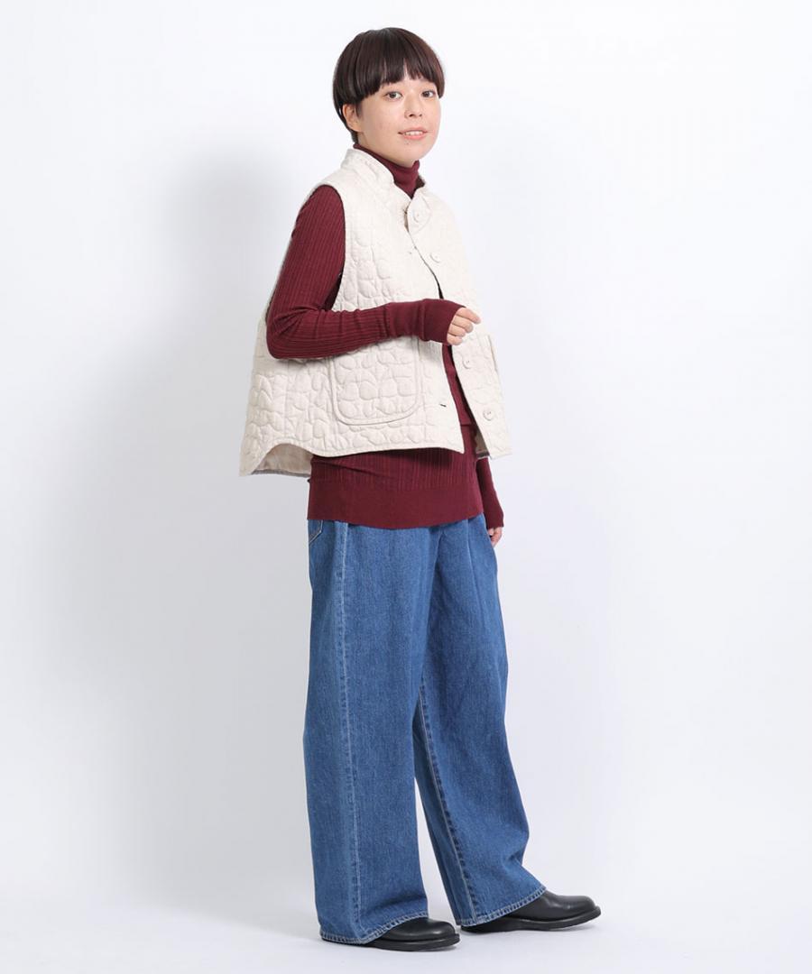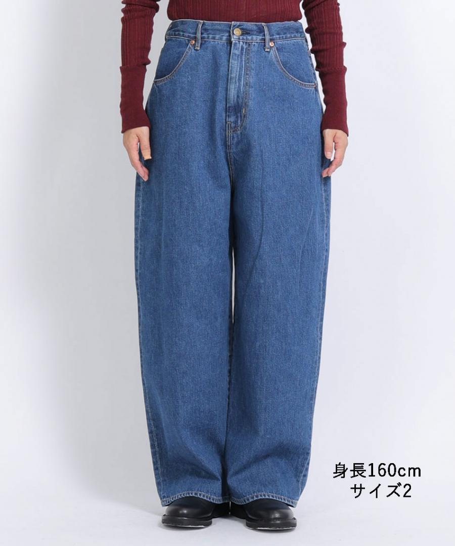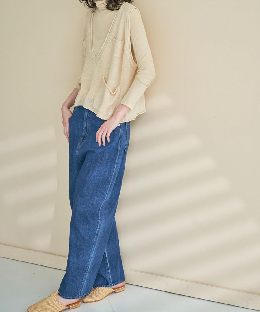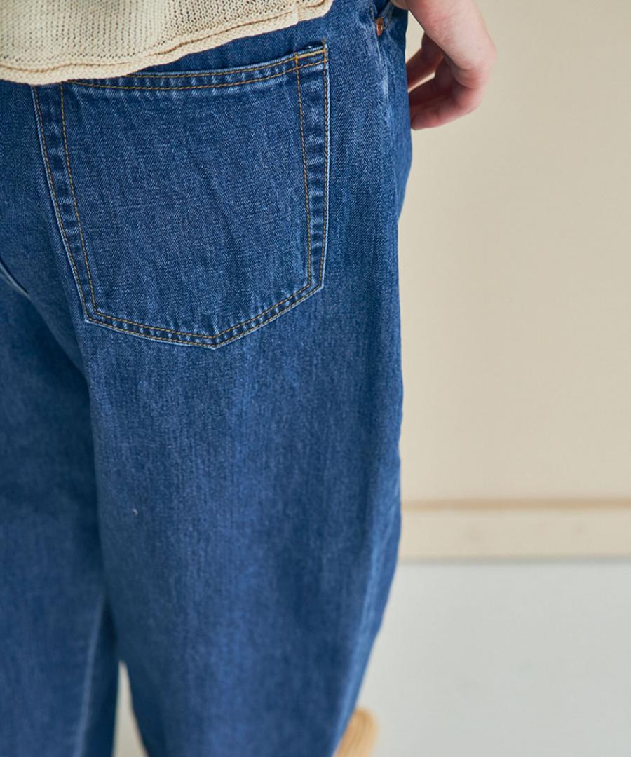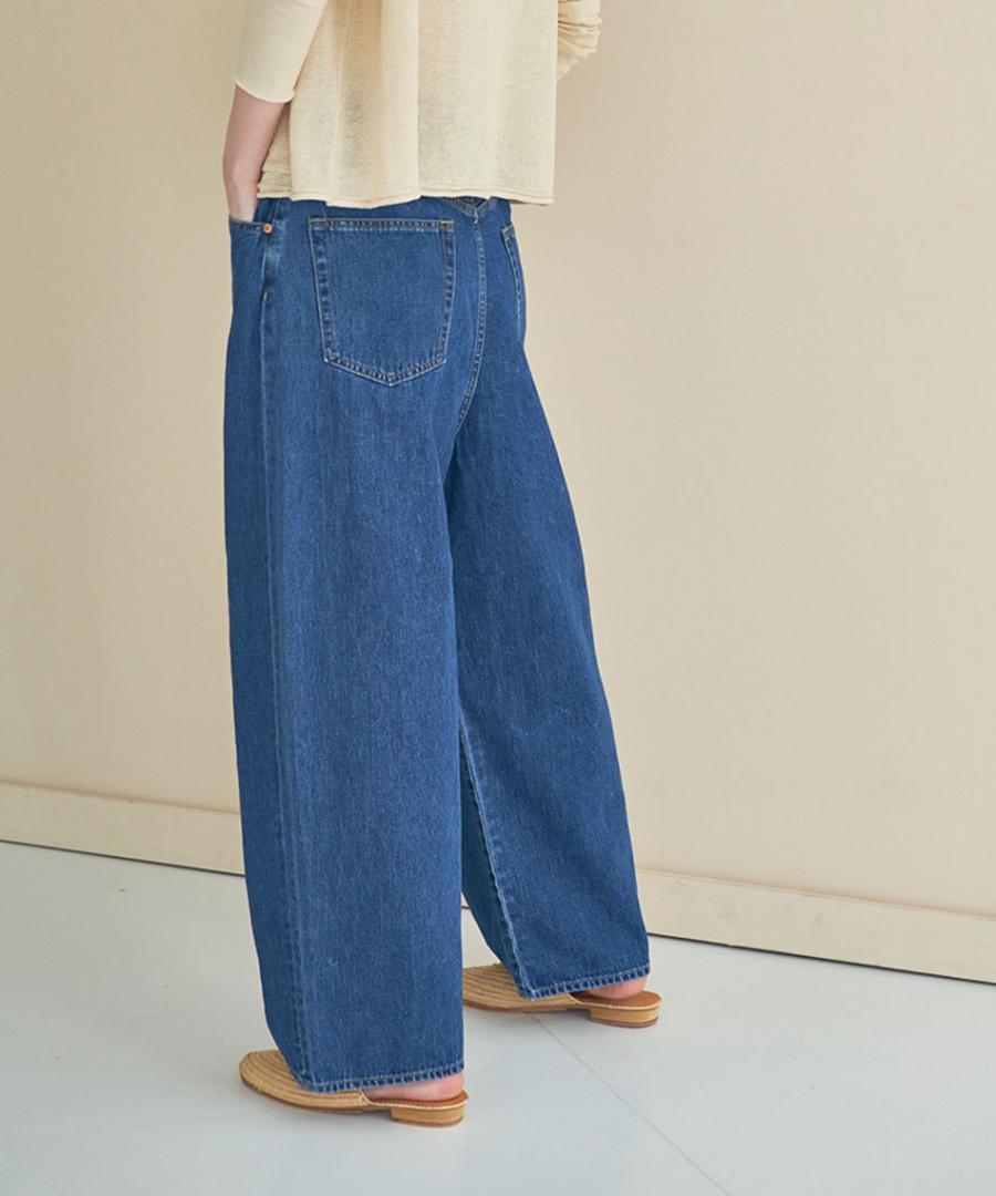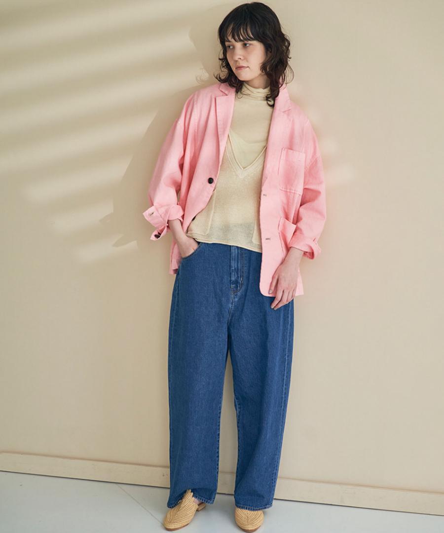 ハイウエストでウエスト周りはスッキリと、ヒップわたりはゆったりとした、ヒップラインを拾わないシルエットになっています。