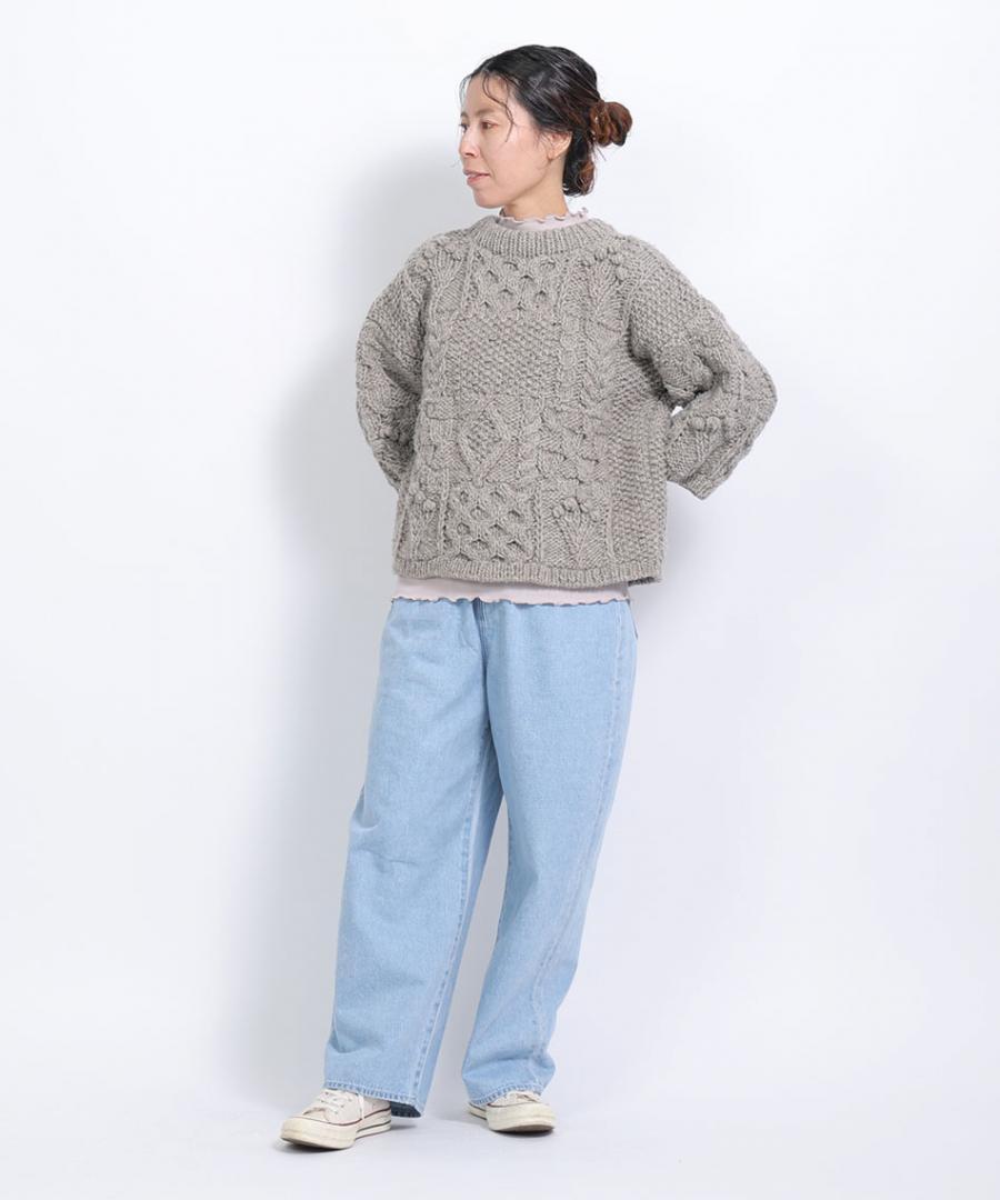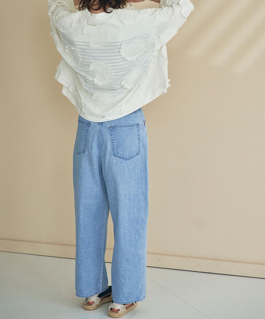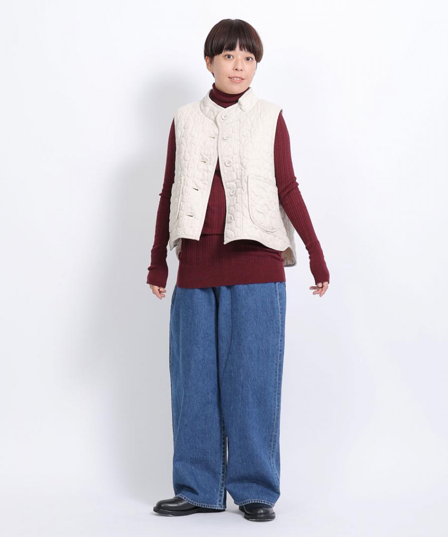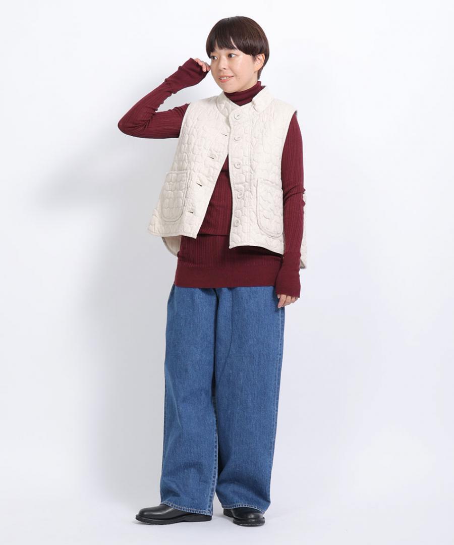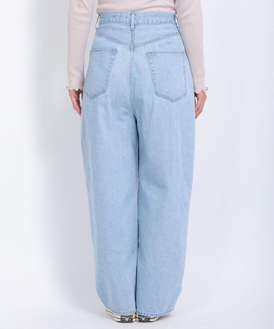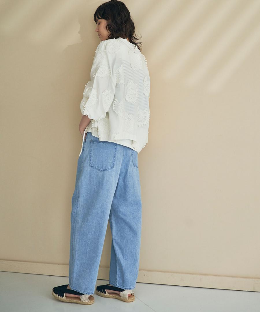 ハイウエストでウエスト周りはスッキリと、ヒップわたりはゆったりとした、ヒップラインを拾わないシルエットになっています。