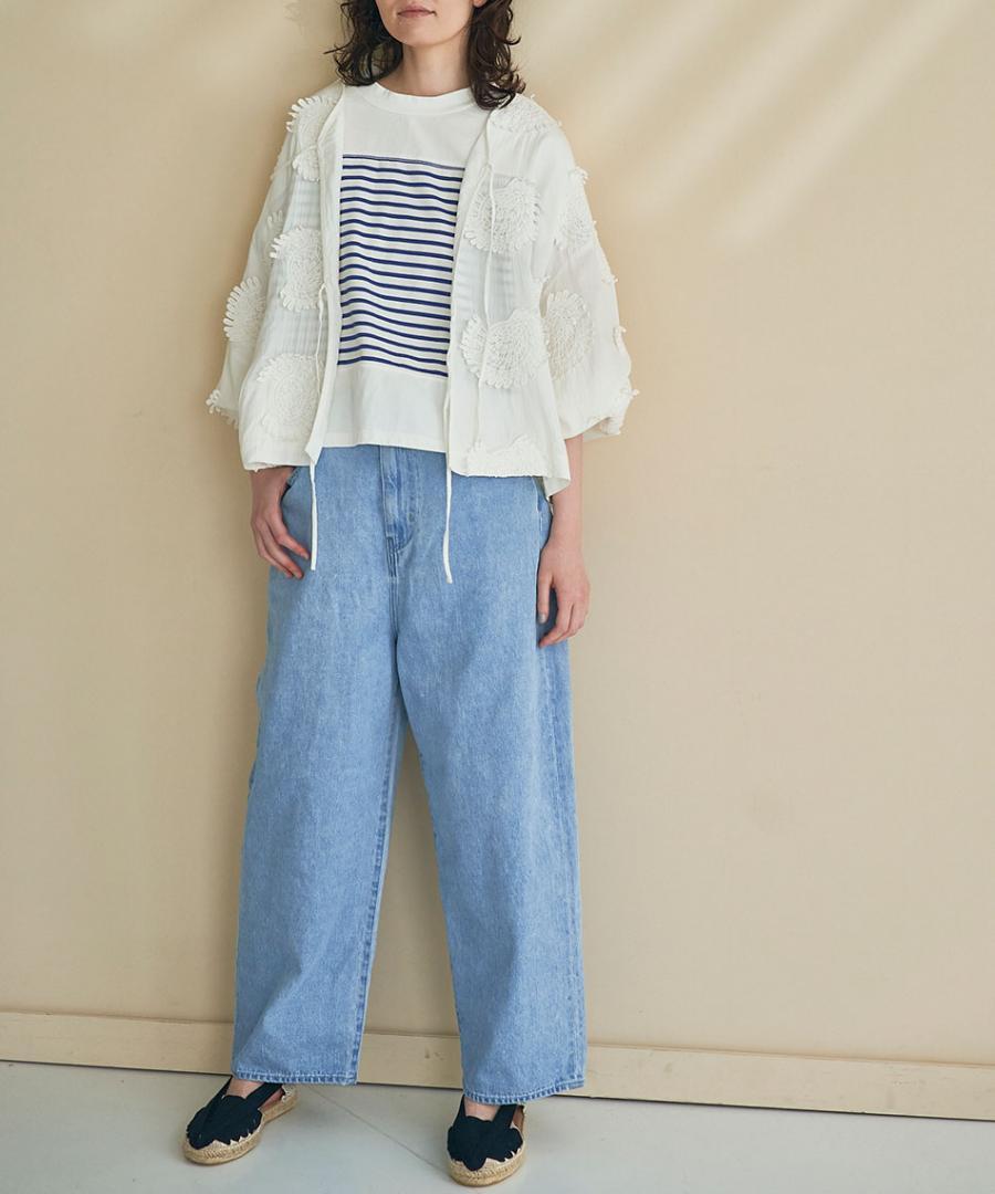 ◆モデル身長/(1~8枚目画像)171cm ESTROISLOSE /モチーフ刺繍コットンサテン はおり