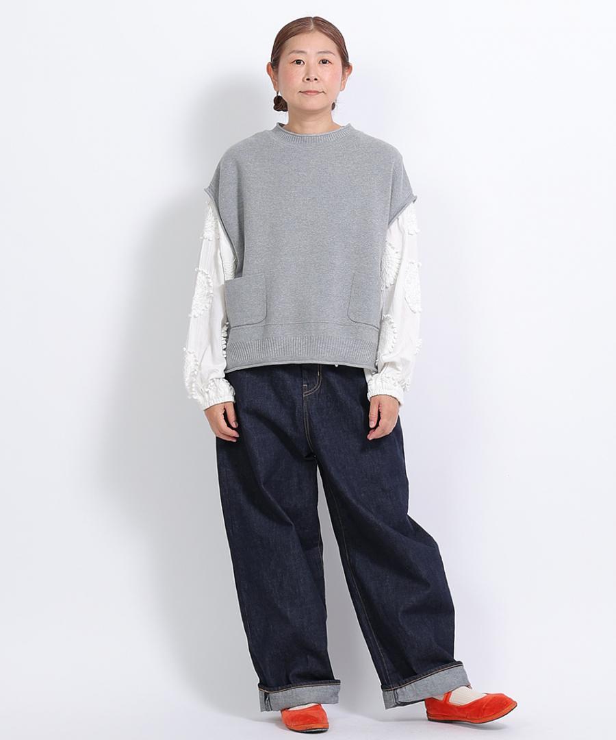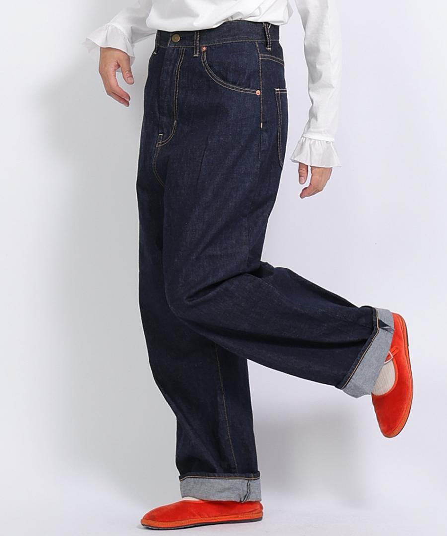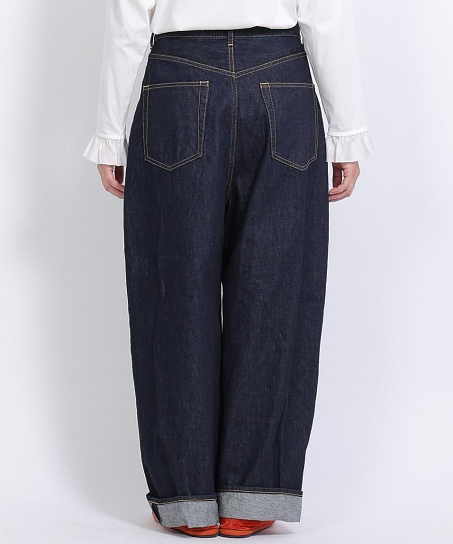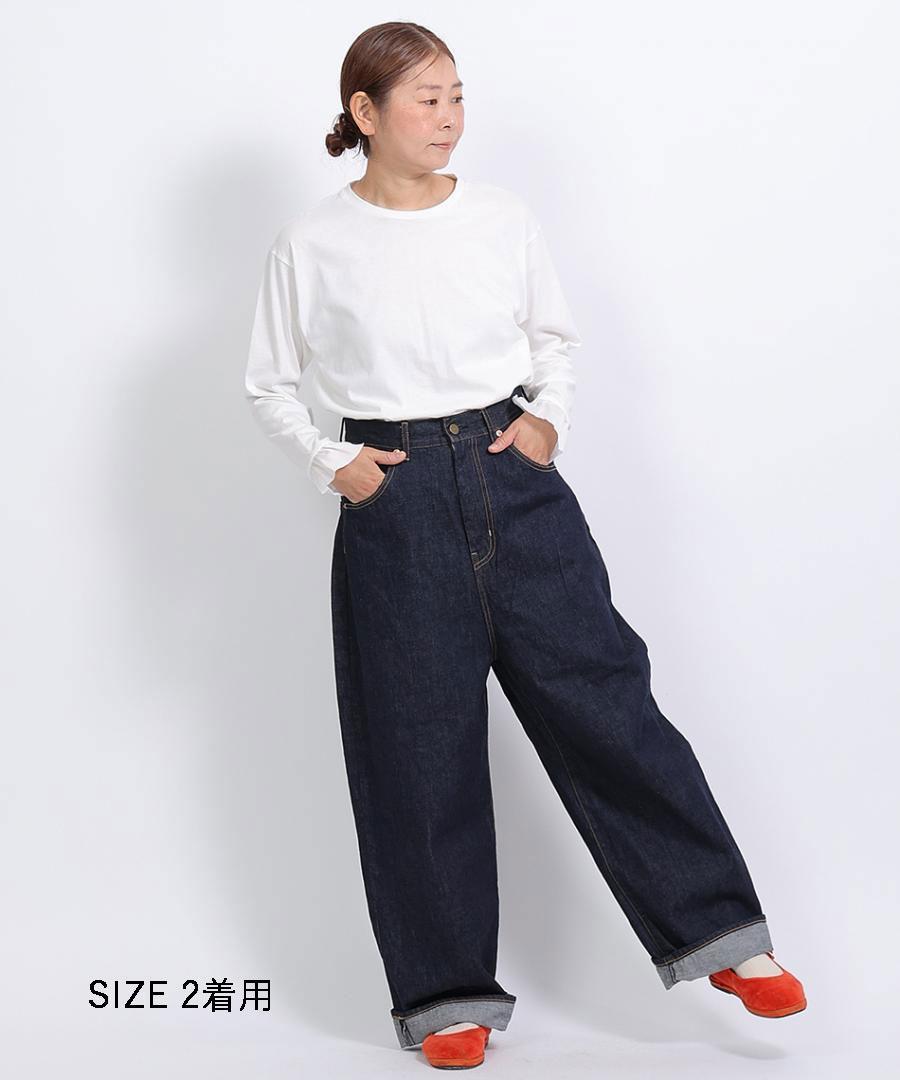 ハイウエストでウエスト周りはスッキリと、ヒップわたりはゆったりとした、ヒップラインを拾わないシルエットになっています。
