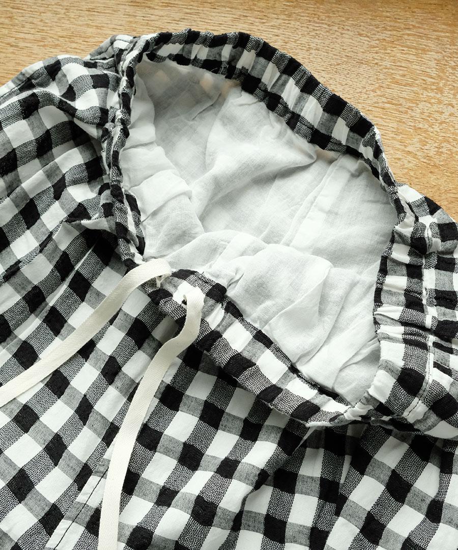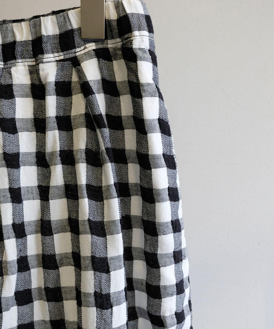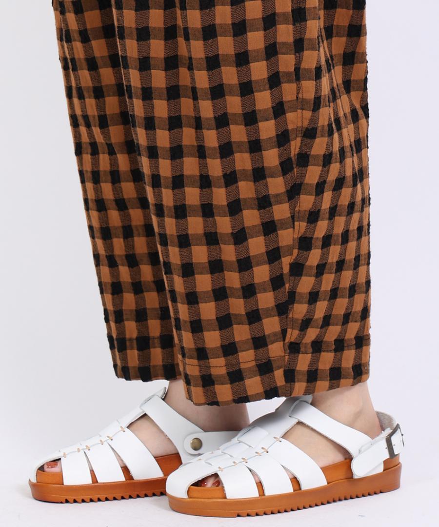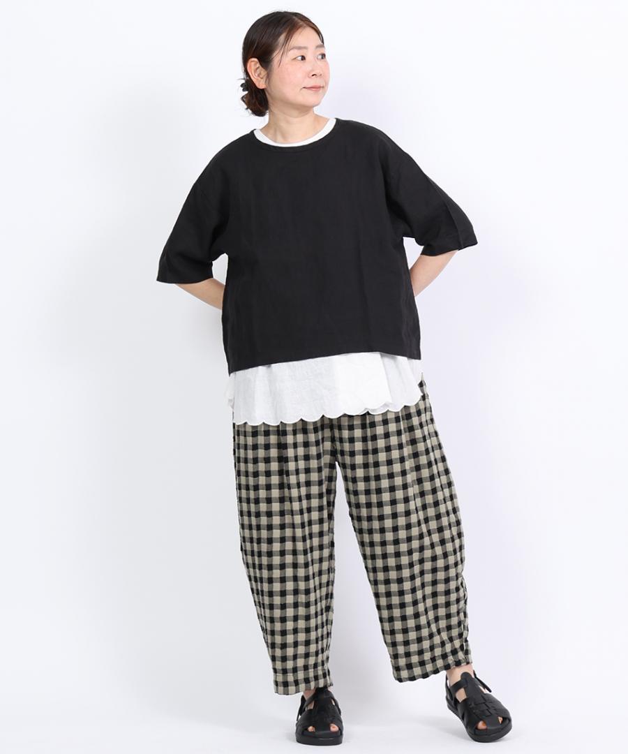 軽やかな綿麻素材のメッシュギンガムチェックパンツ。