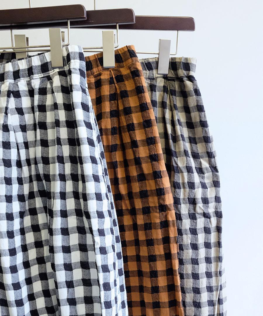 シンプルなトップスに合わせて、主役になってくれるボトムスです。