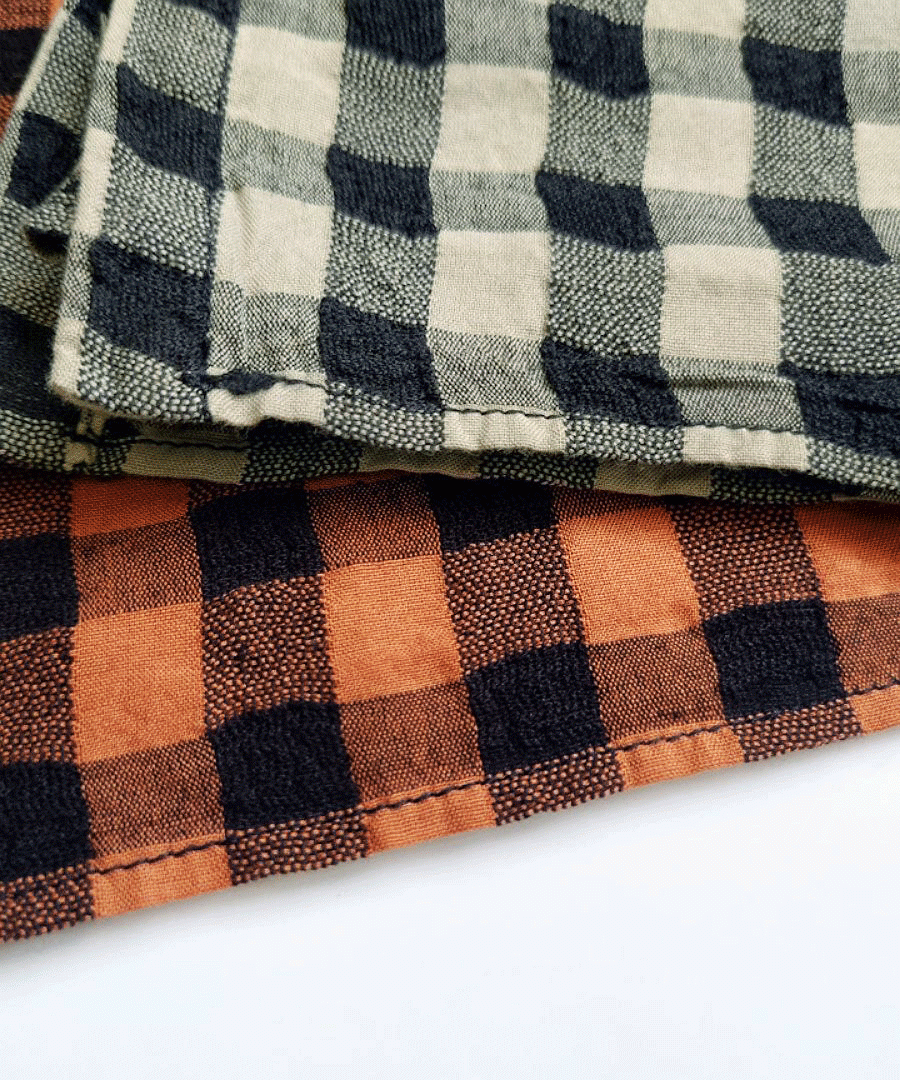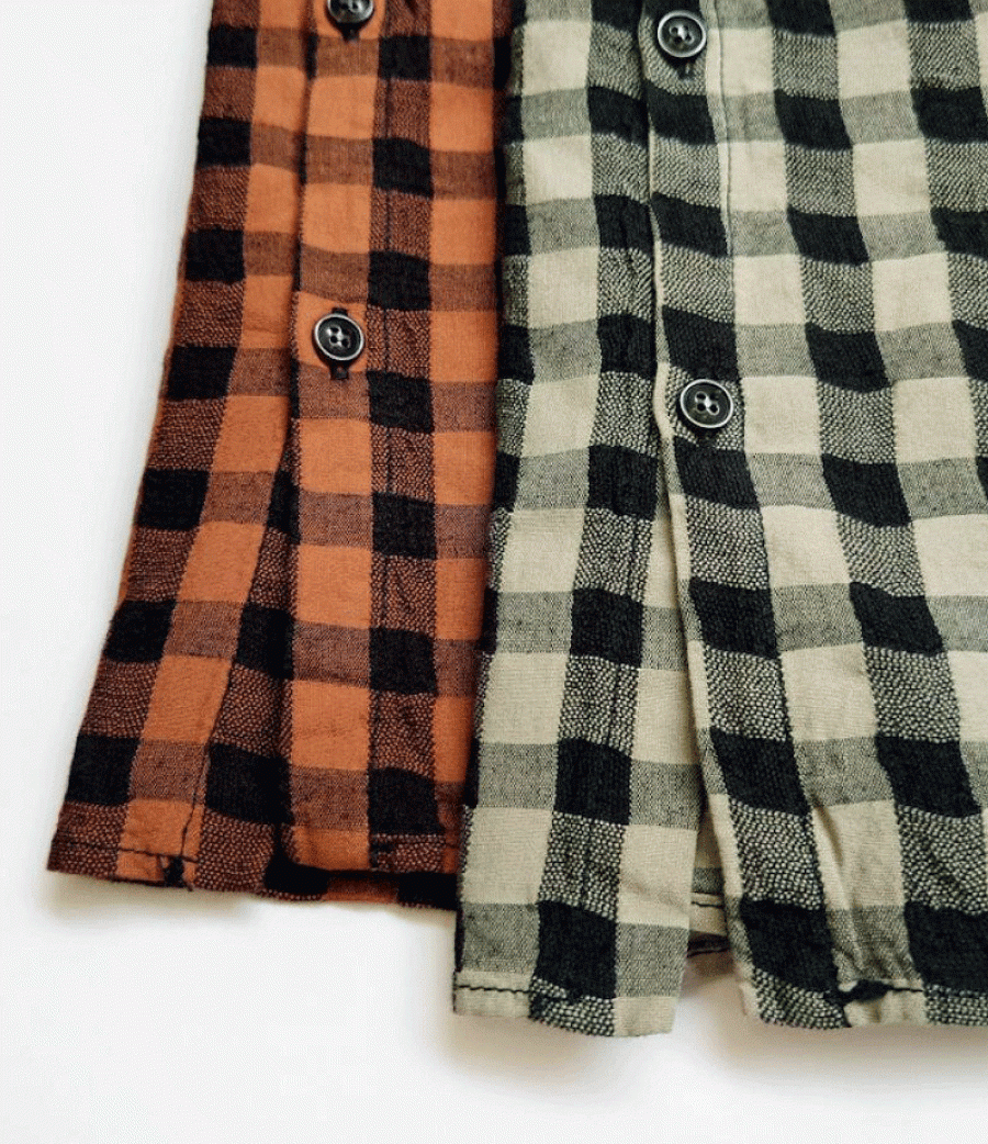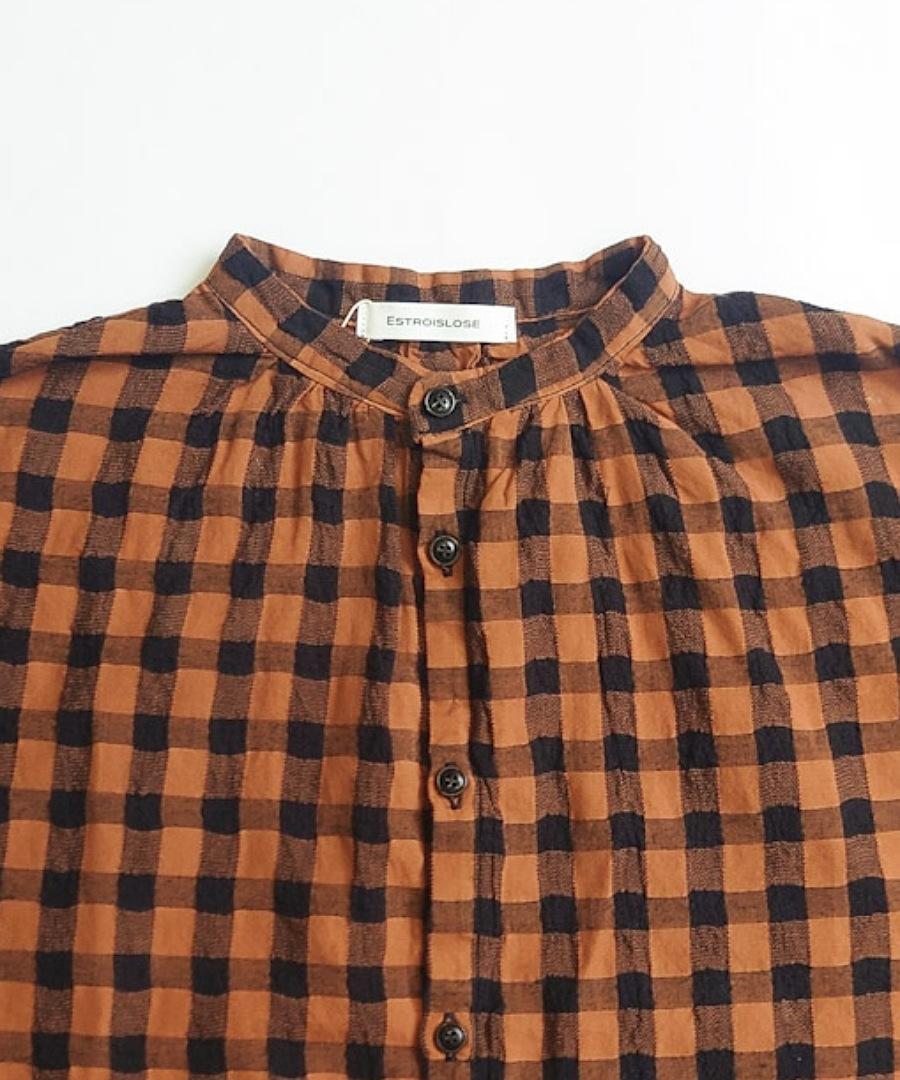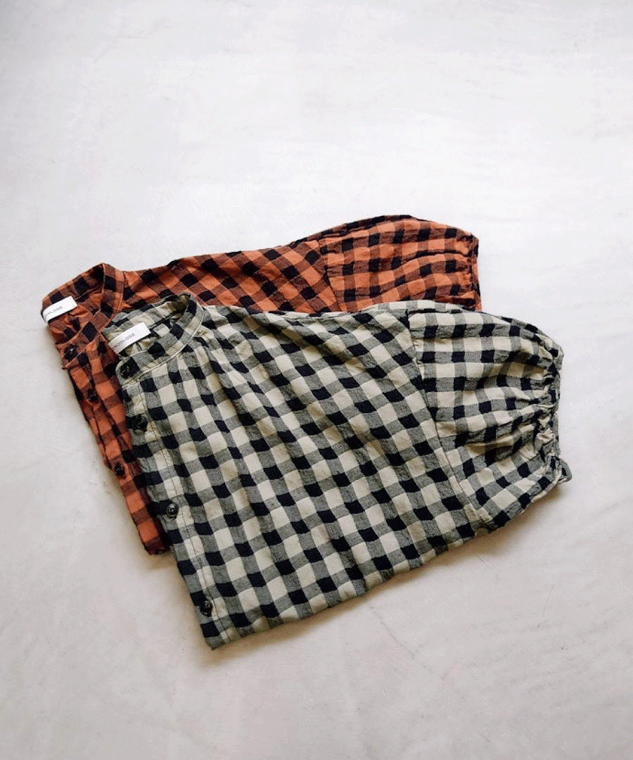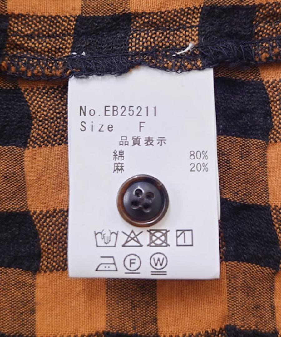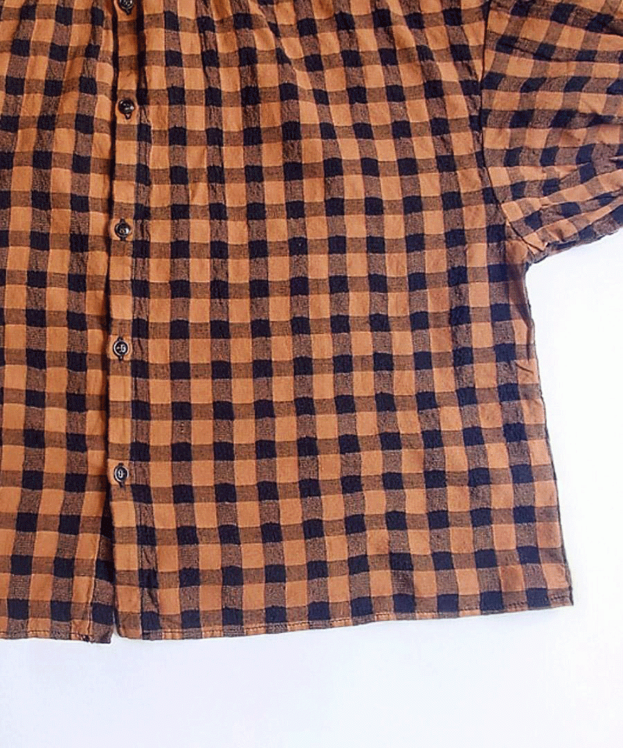 綿麻素材のメッシュギンガムチェックブラウス。