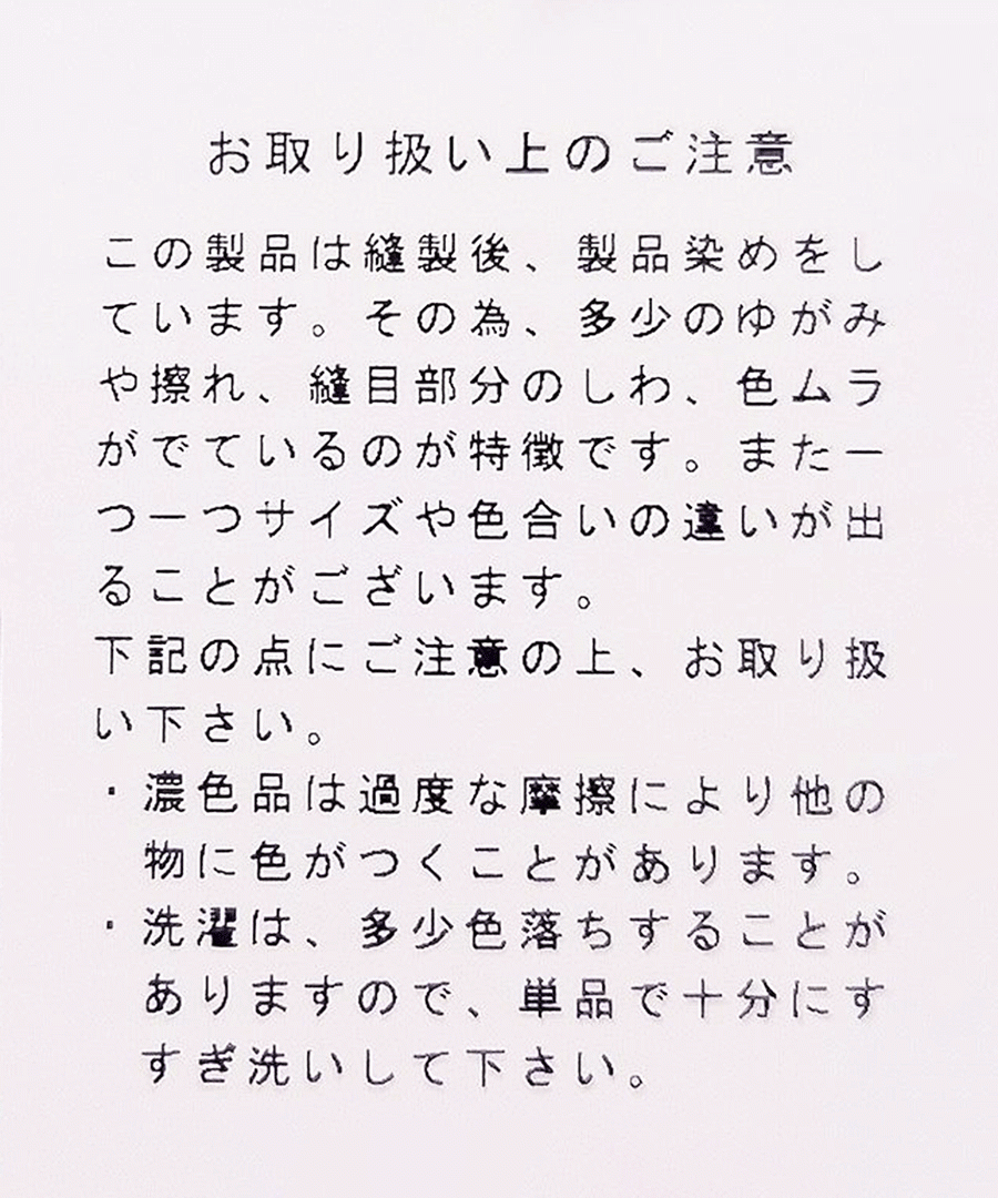 オーバーダイを施し、独特の風合いとラフな雰囲気に仕上げています。