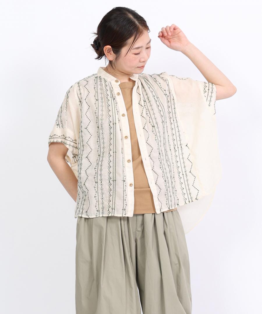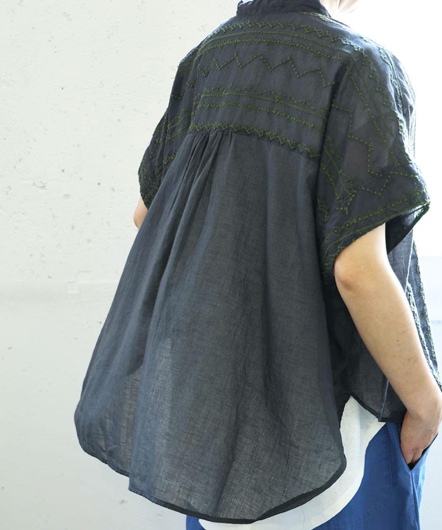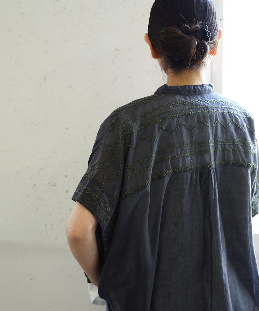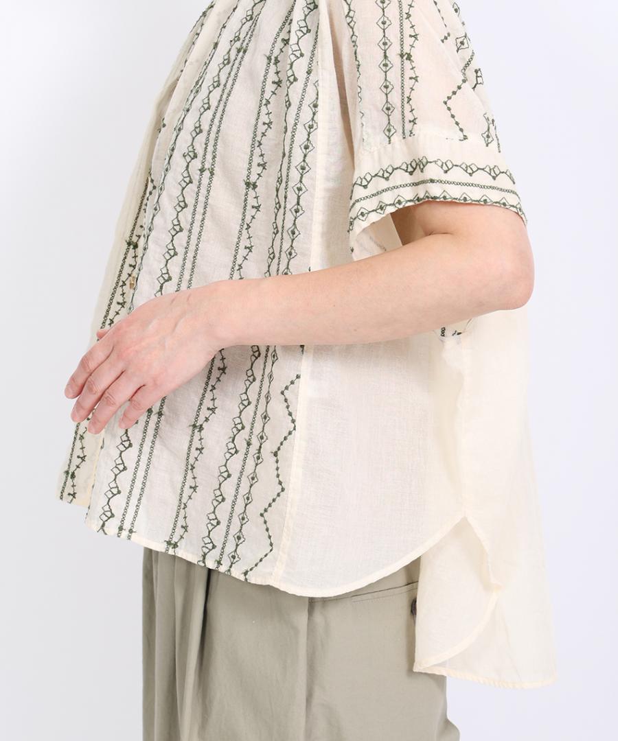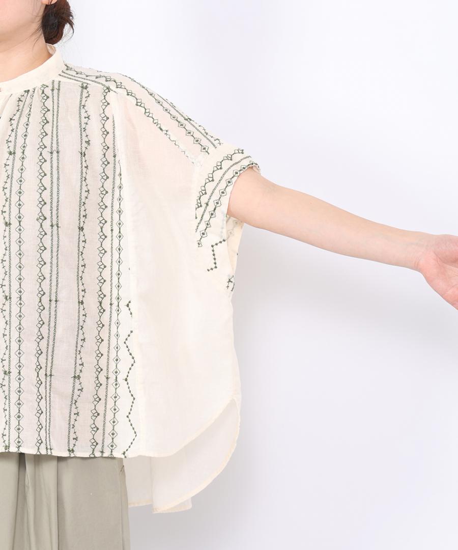 コットンガーゼクロスステッチ刺繍 ブラウス