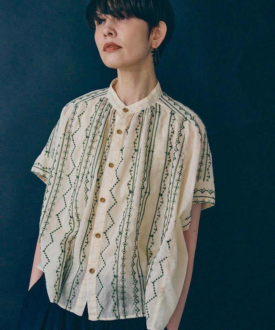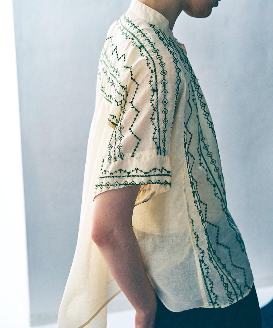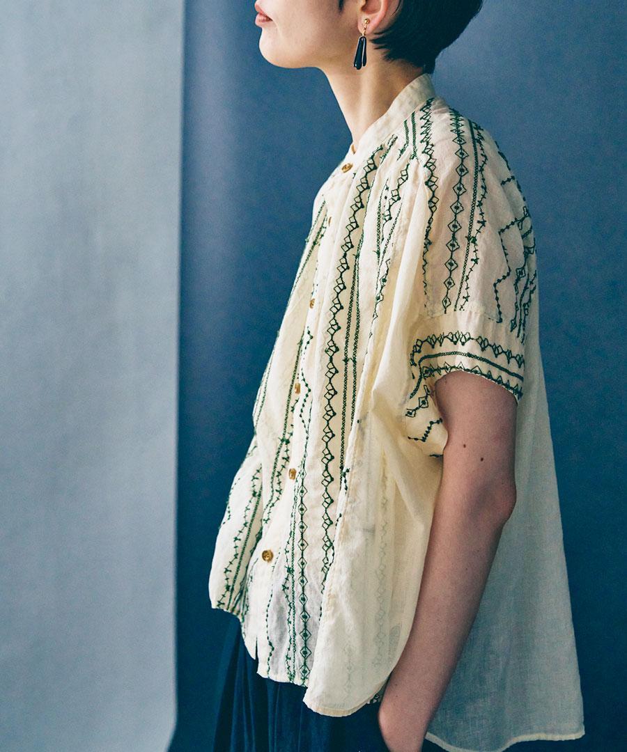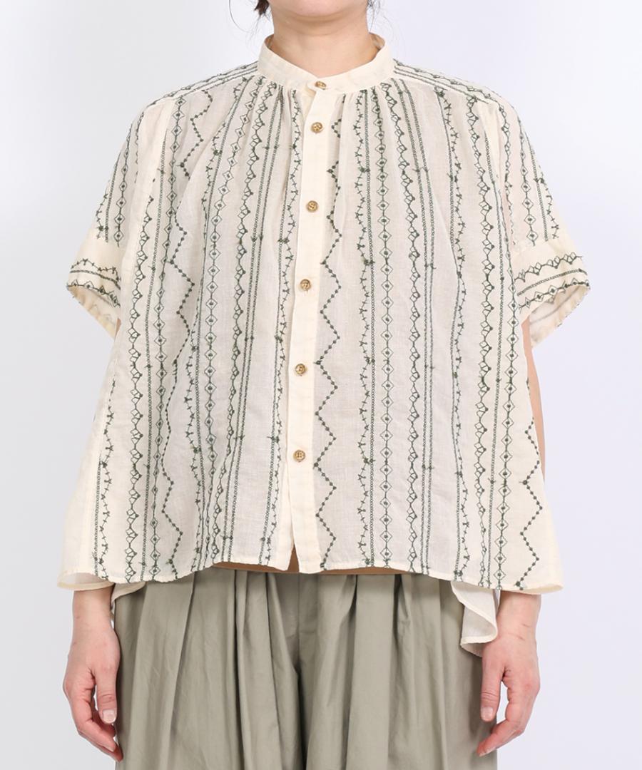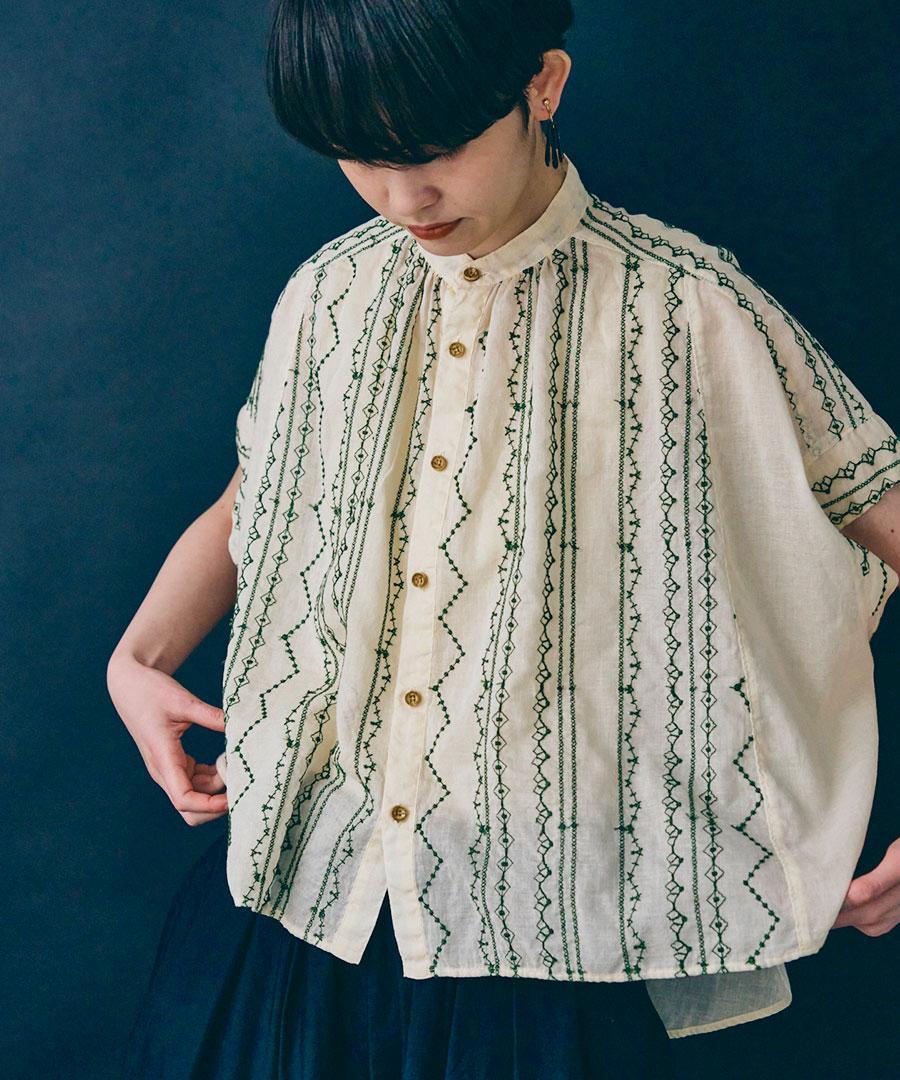 コットンガーゼクロスステッチ刺繍 ブラウス
