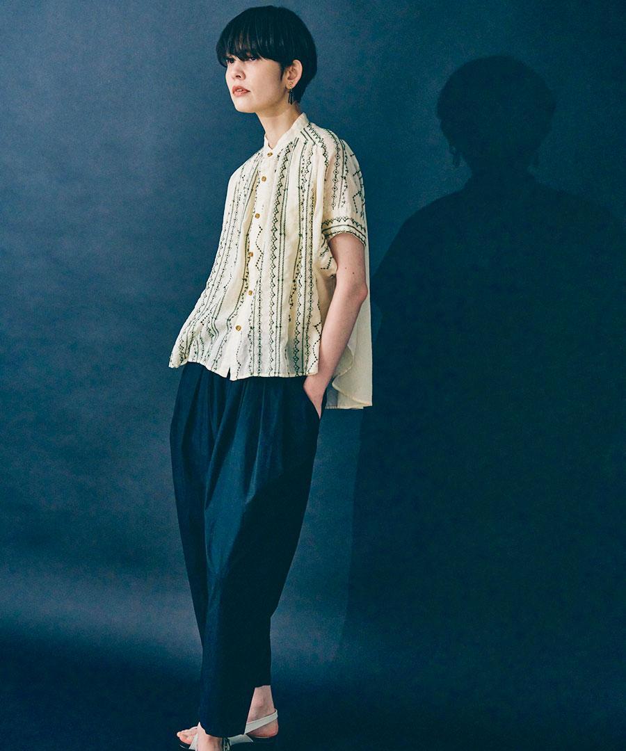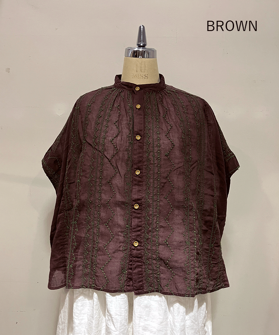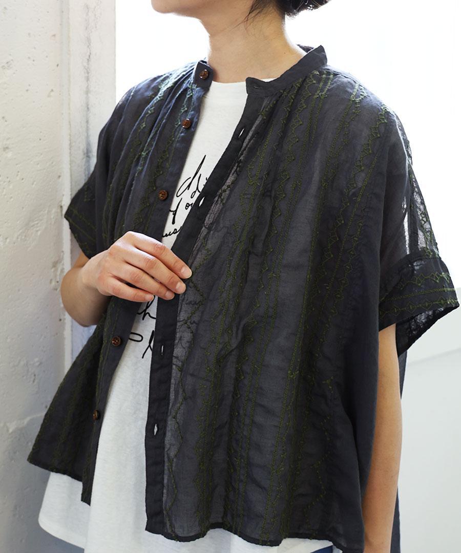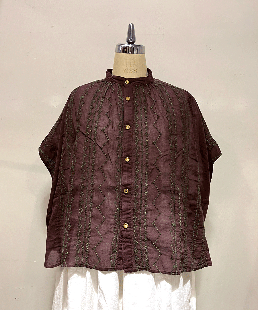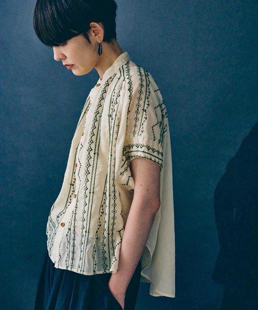 コットンガーゼクロスステッチ刺繍 ブラウス