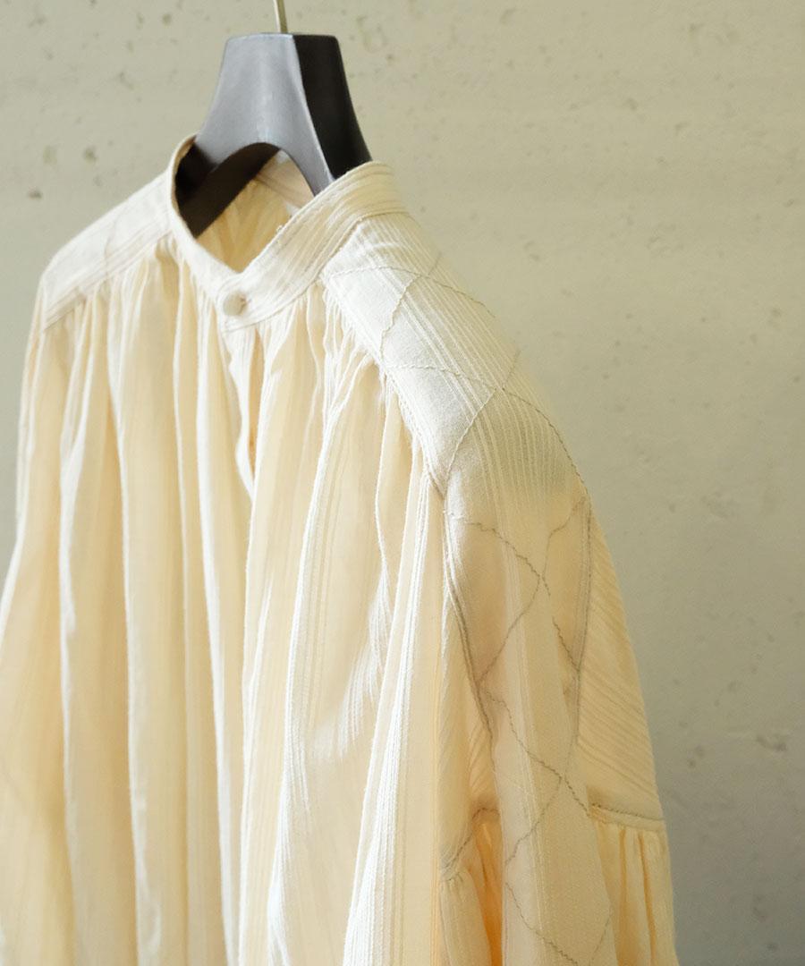 さりげない縦ストライプの織り柄があり、シンプルながらも表情豊かな仕上がりになっています。