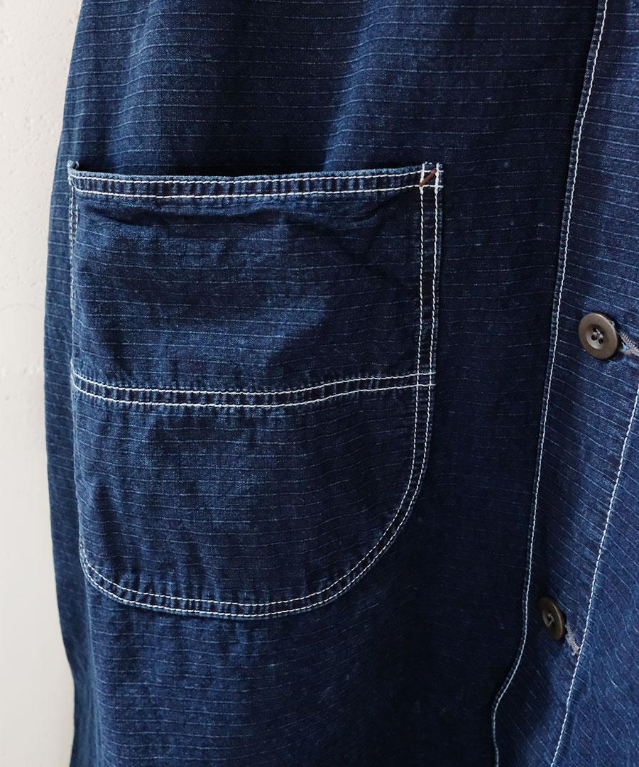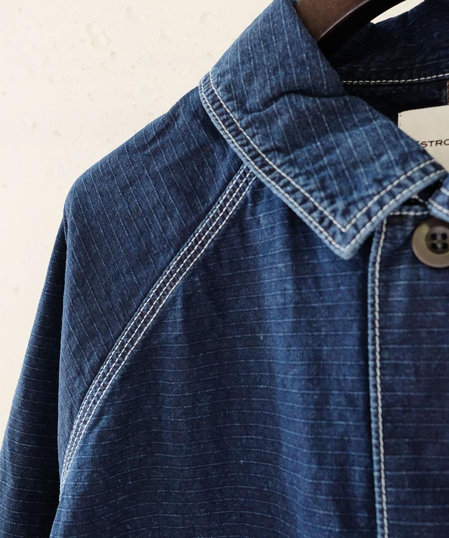 表面に凹凸のあるリップストップ生地に、ストーンウォッシュを施しました。