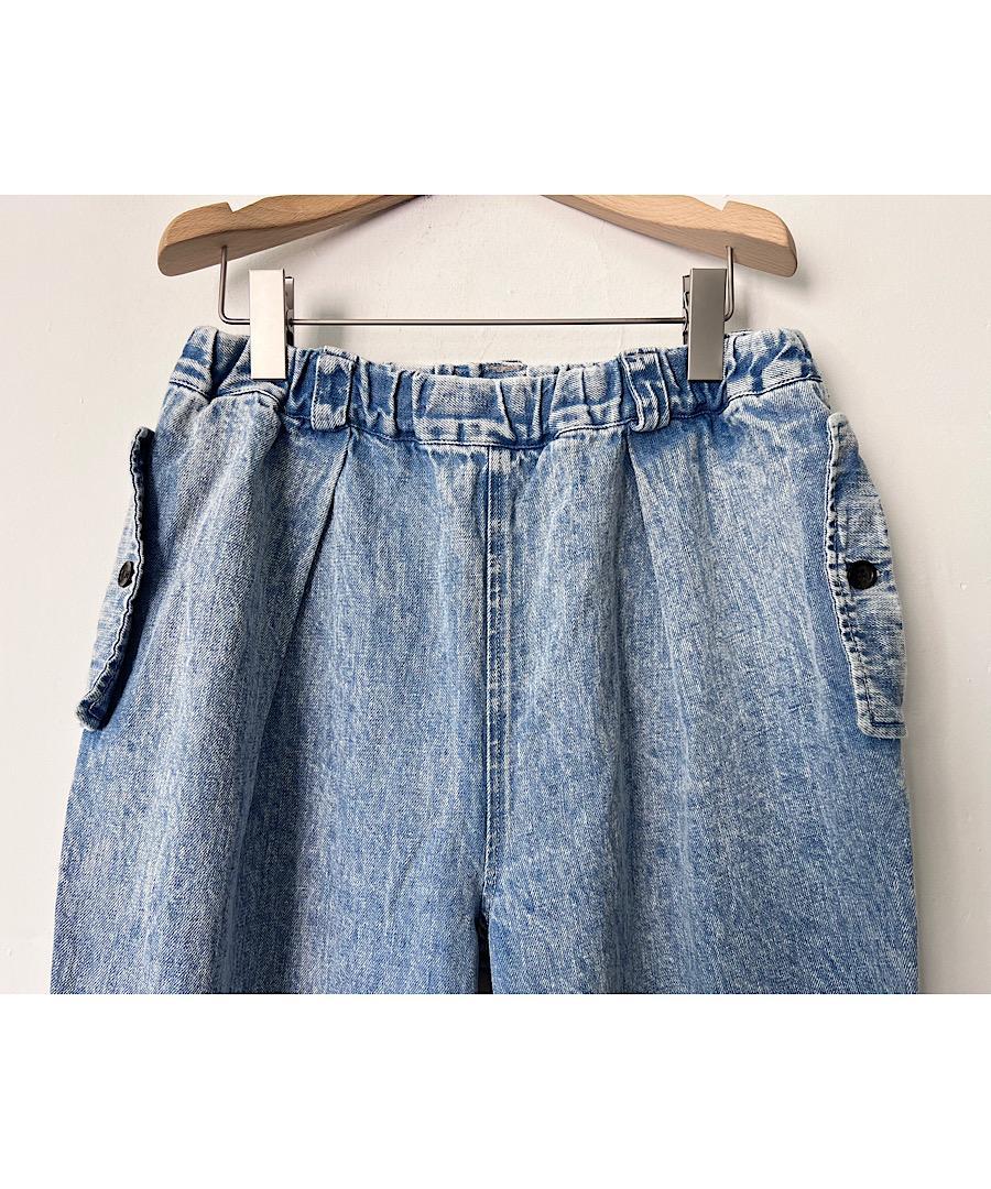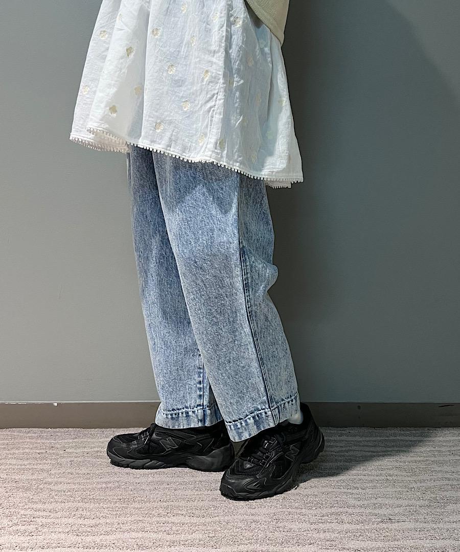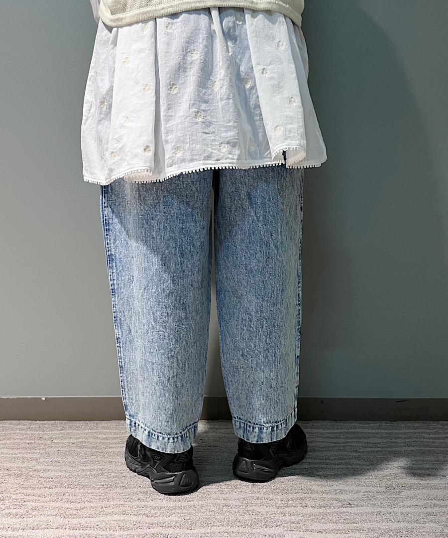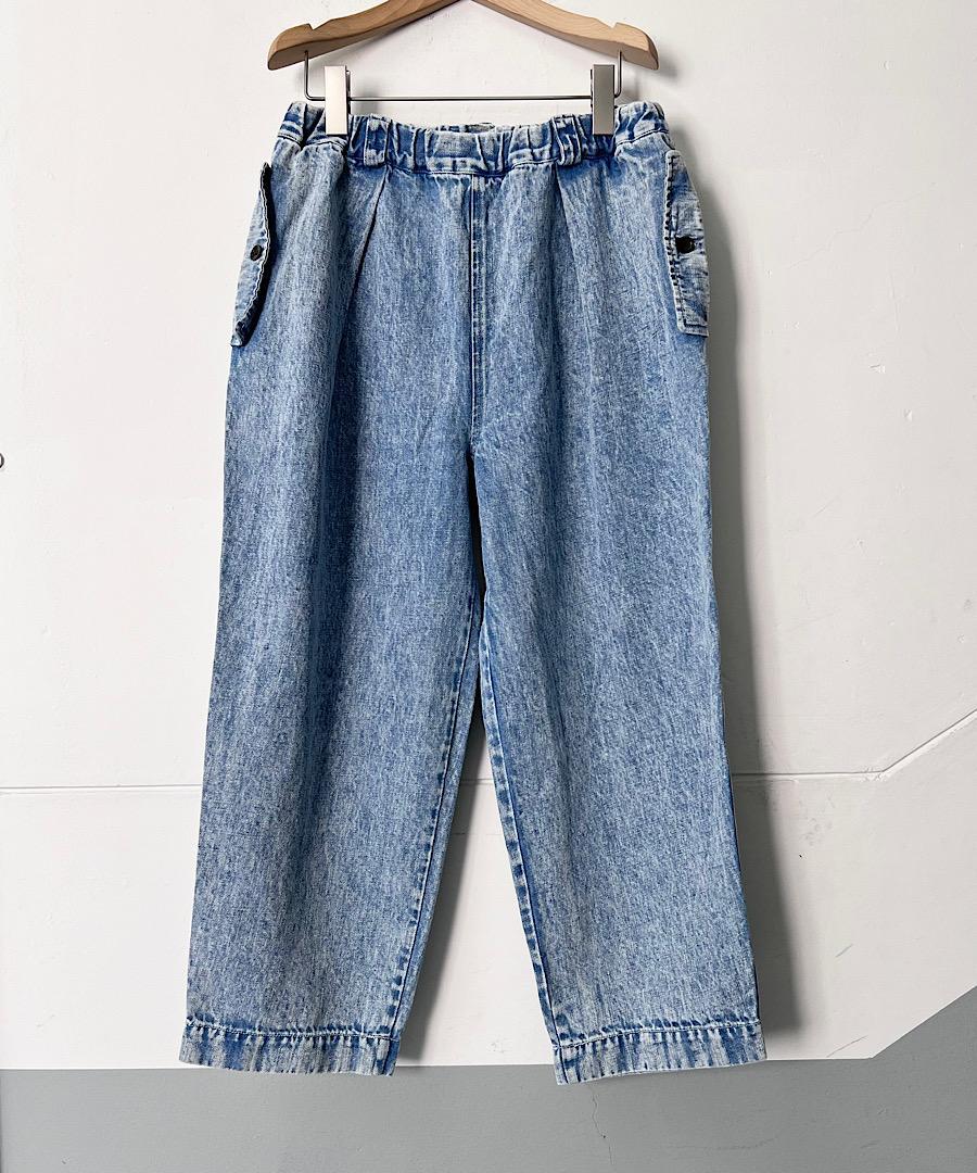 ソフトな風合いのデニムを使用したタックパンツ。