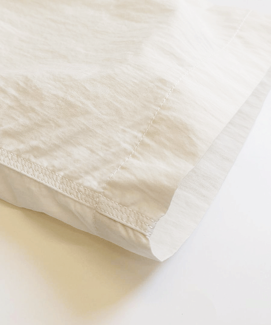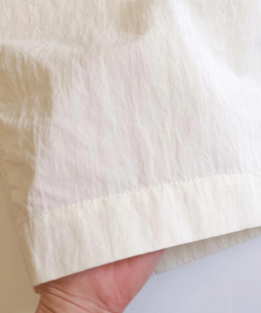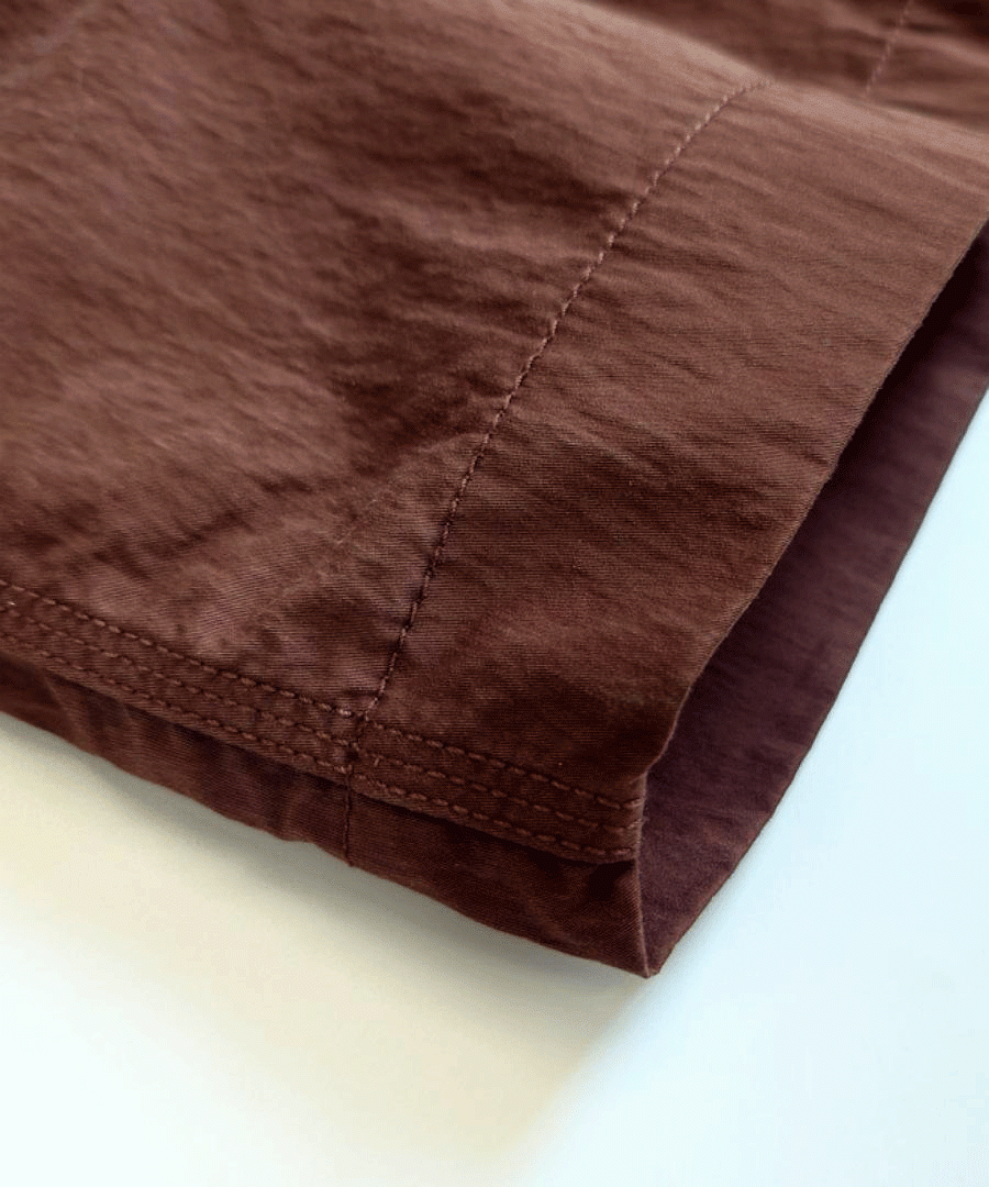 コシと反発力のあるギャバ、三本ステッチでパッカリングを出しました。