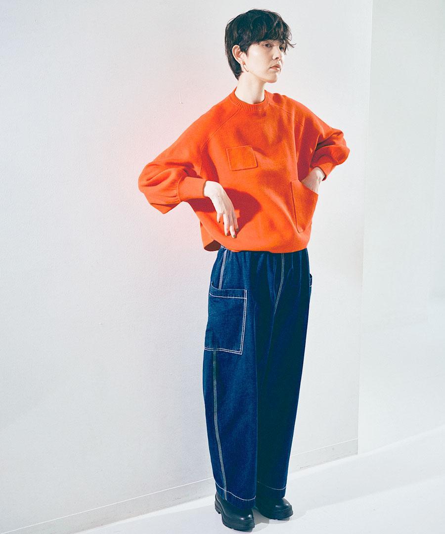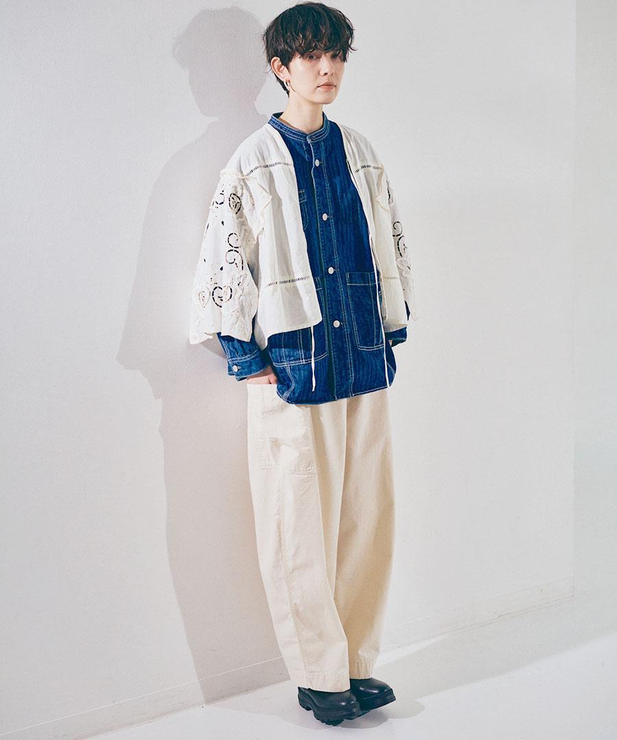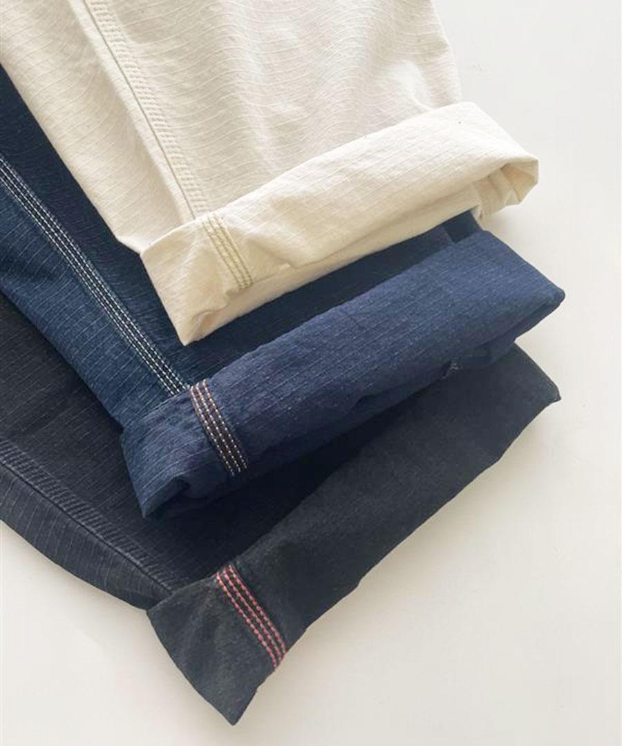 格子状の生地も表情があり一癖あるデニムパンツに仕上がっています。