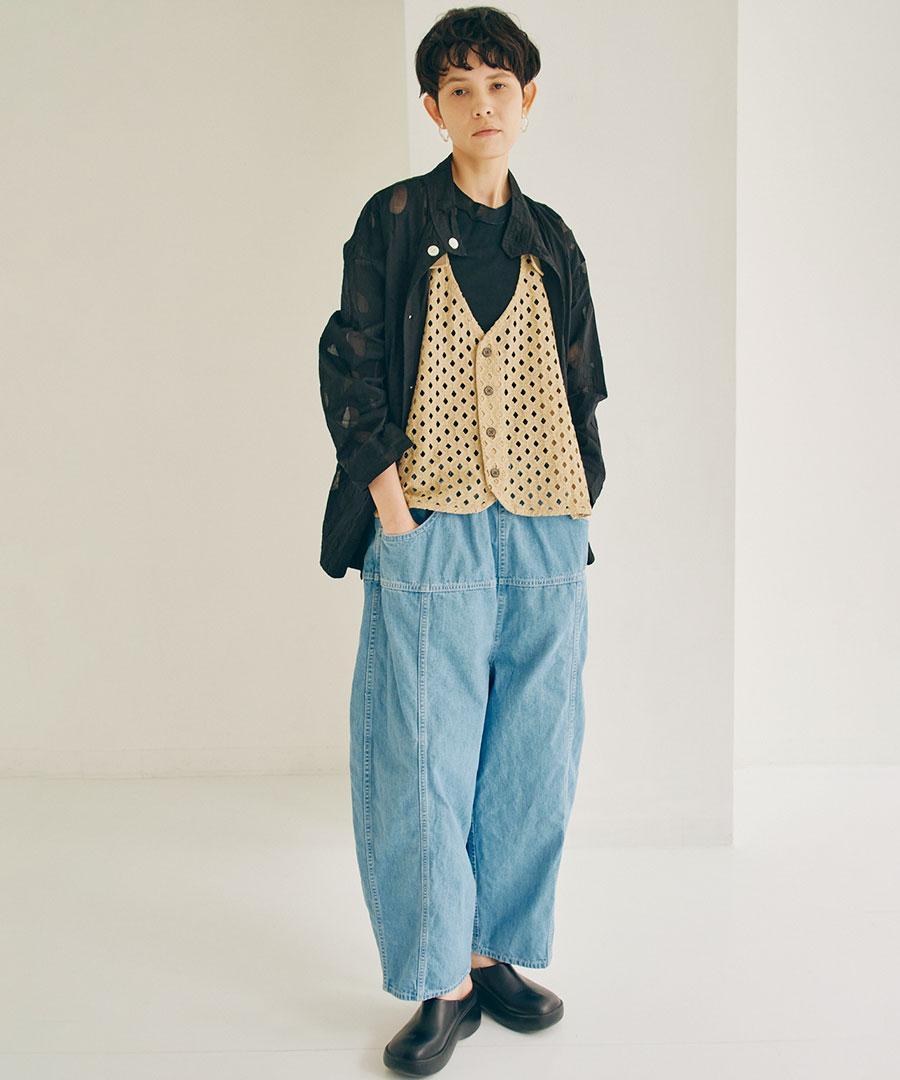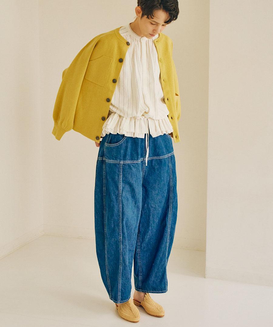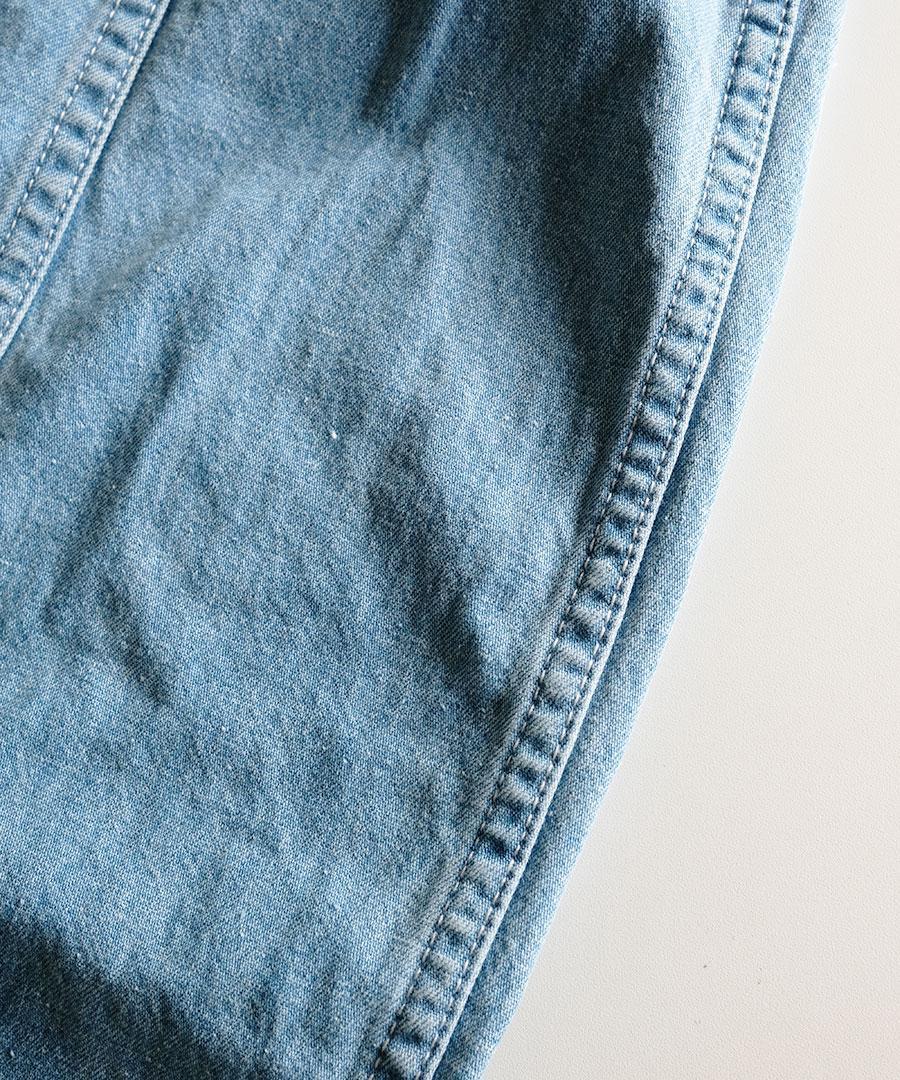 10ozのネップデニムを使用し、デニムらしさは残しながらも、軽くて柔らかな着心地に仕上げました。