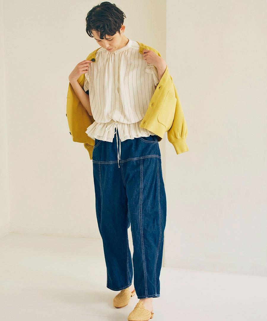 全体にゆとりをもたせつつ、広がりすぎないテーパードシルエットで、大人らしいバランスに。
