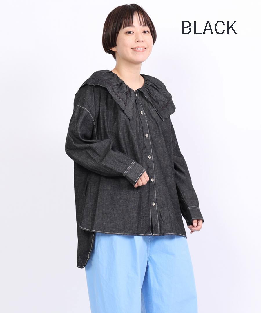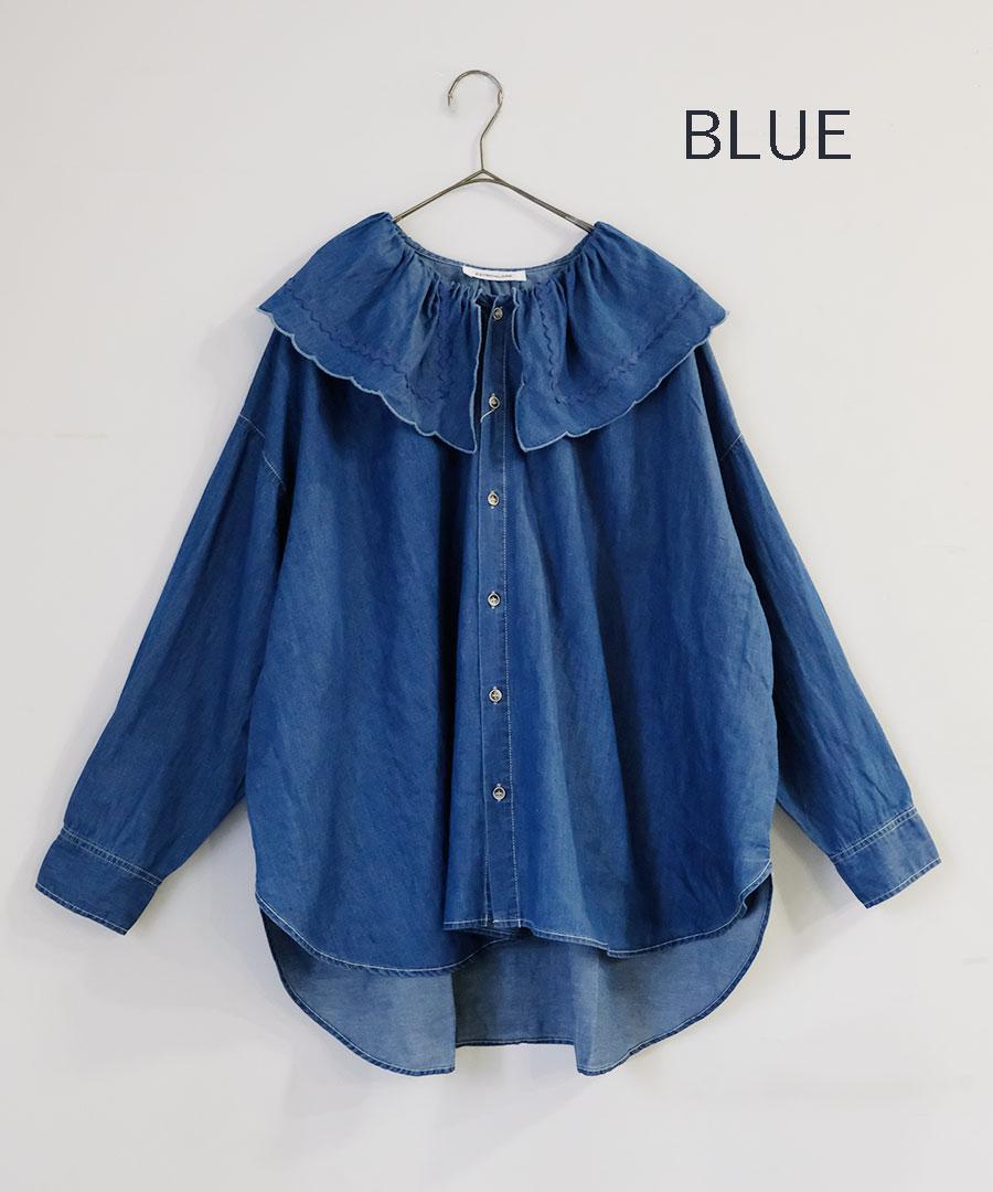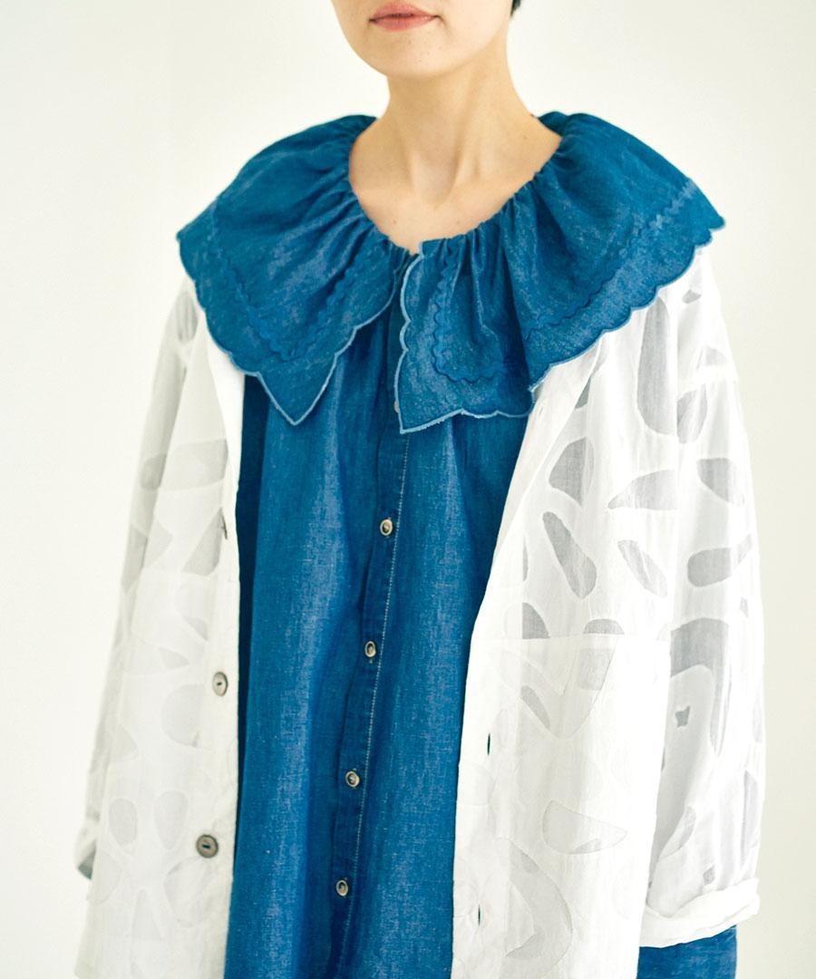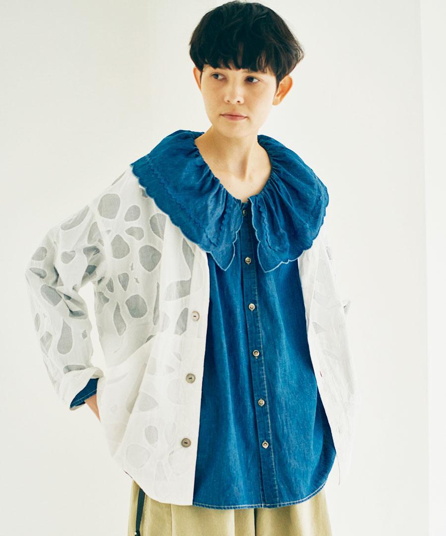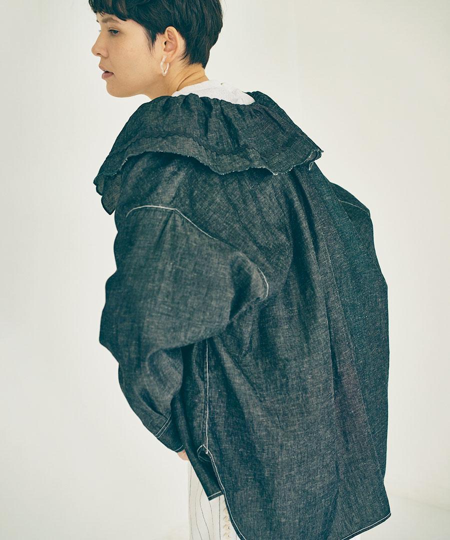 〈ビッグカラーがポイントの羽織れるブラウス〉
