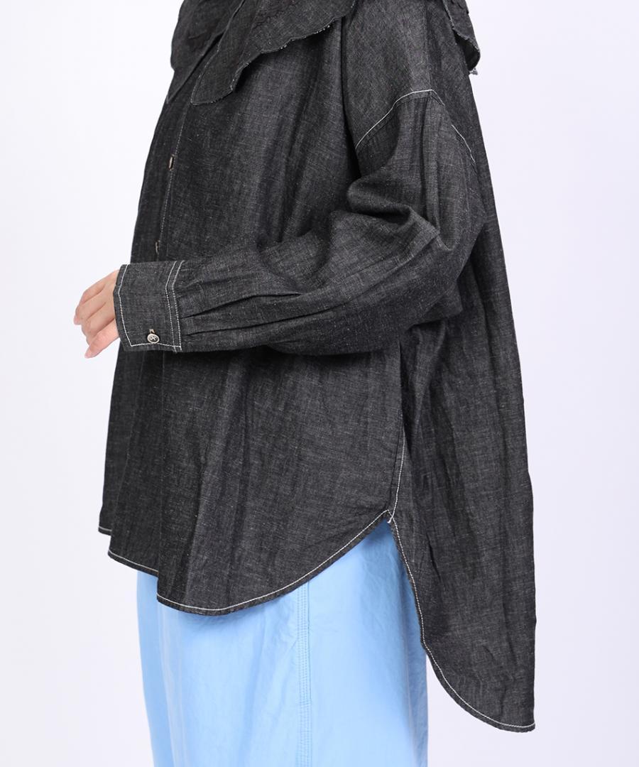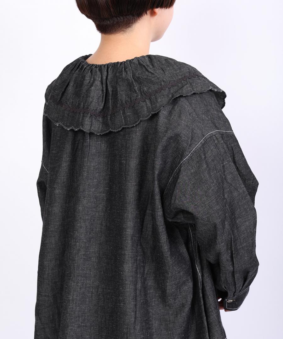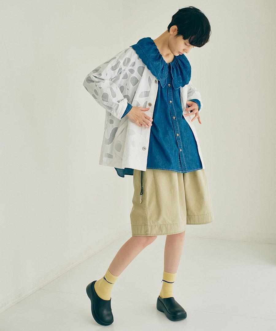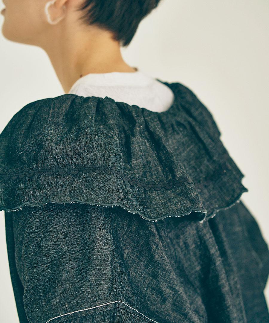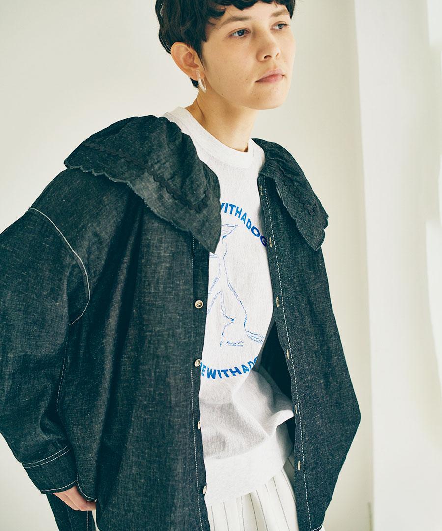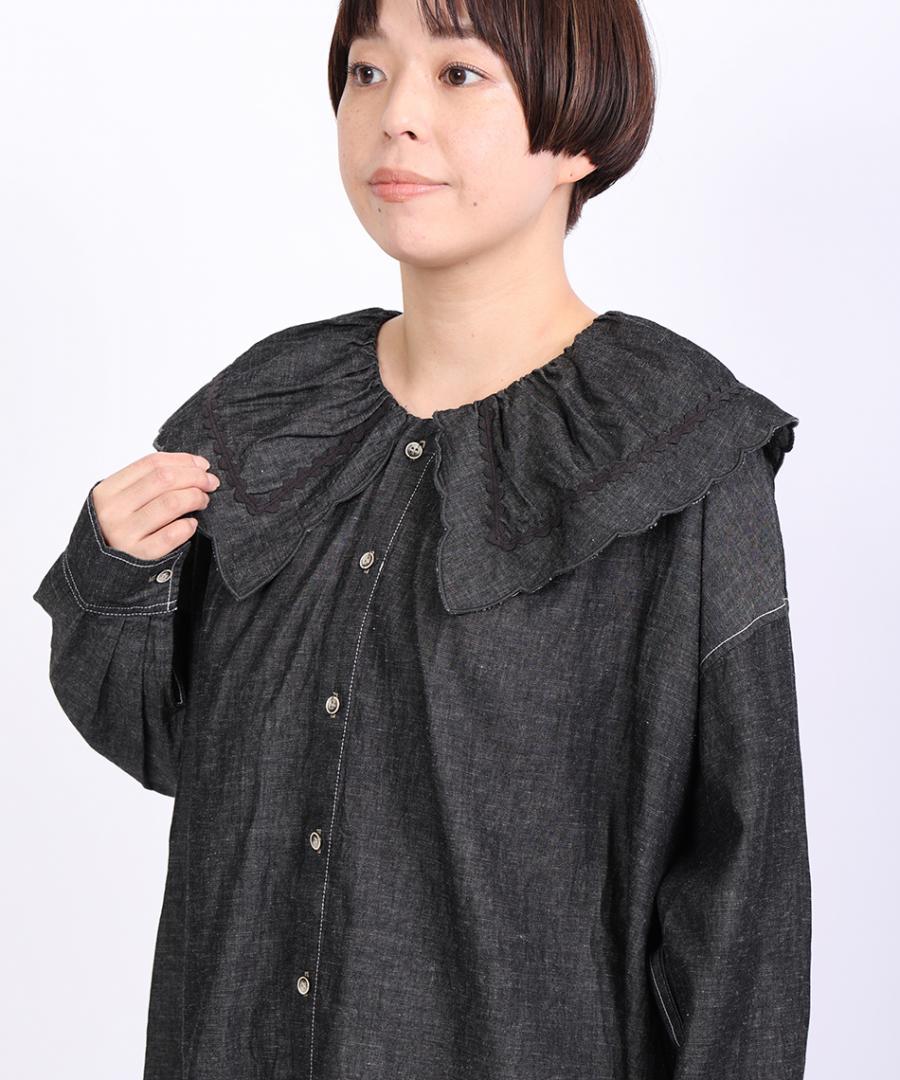 〈ビッグカラーがポイントの羽織れるブラウス〉