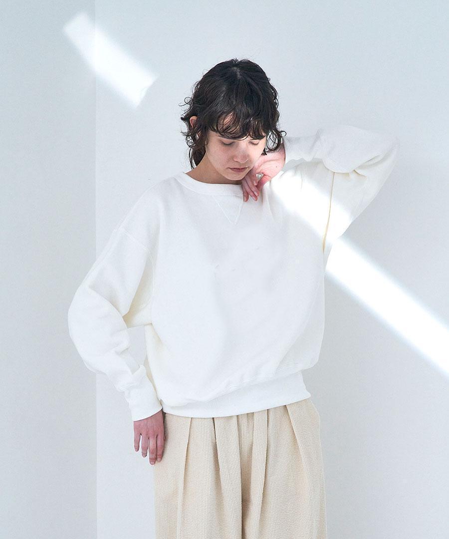 希少な機械『吊り編機』でテンションをかけずにゆっくりと編み、柔らかく膨らみや伸びのある素材で仕立てたプルオーバーです。